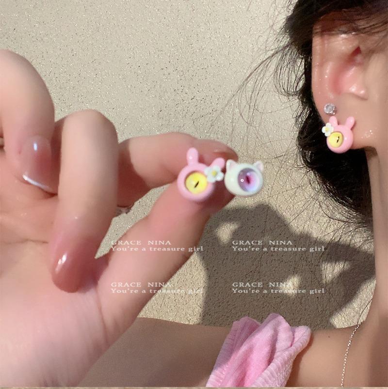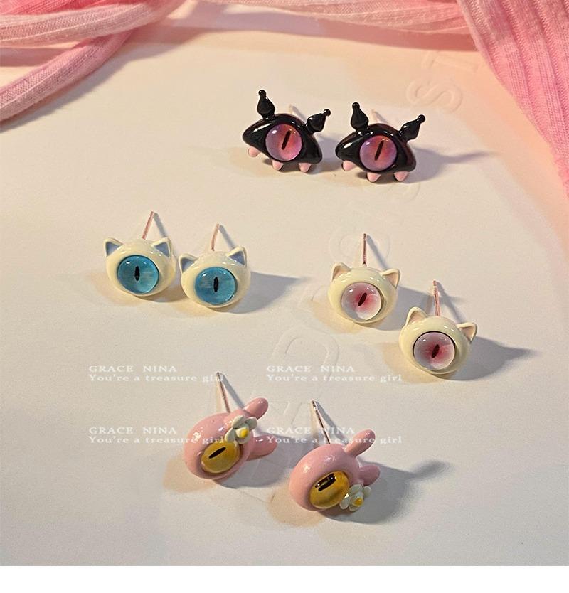 Dark Ear Stud with Different Pupil, White Blue different pupil, Peach different pupil, Interesting rabbit pupil