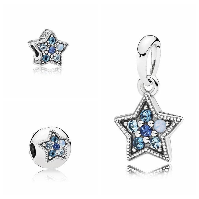 | Nova estrela azul de cinco pontas diamante liga contas soltas oceano estrela pingente diy frisado pulseira acessórios |