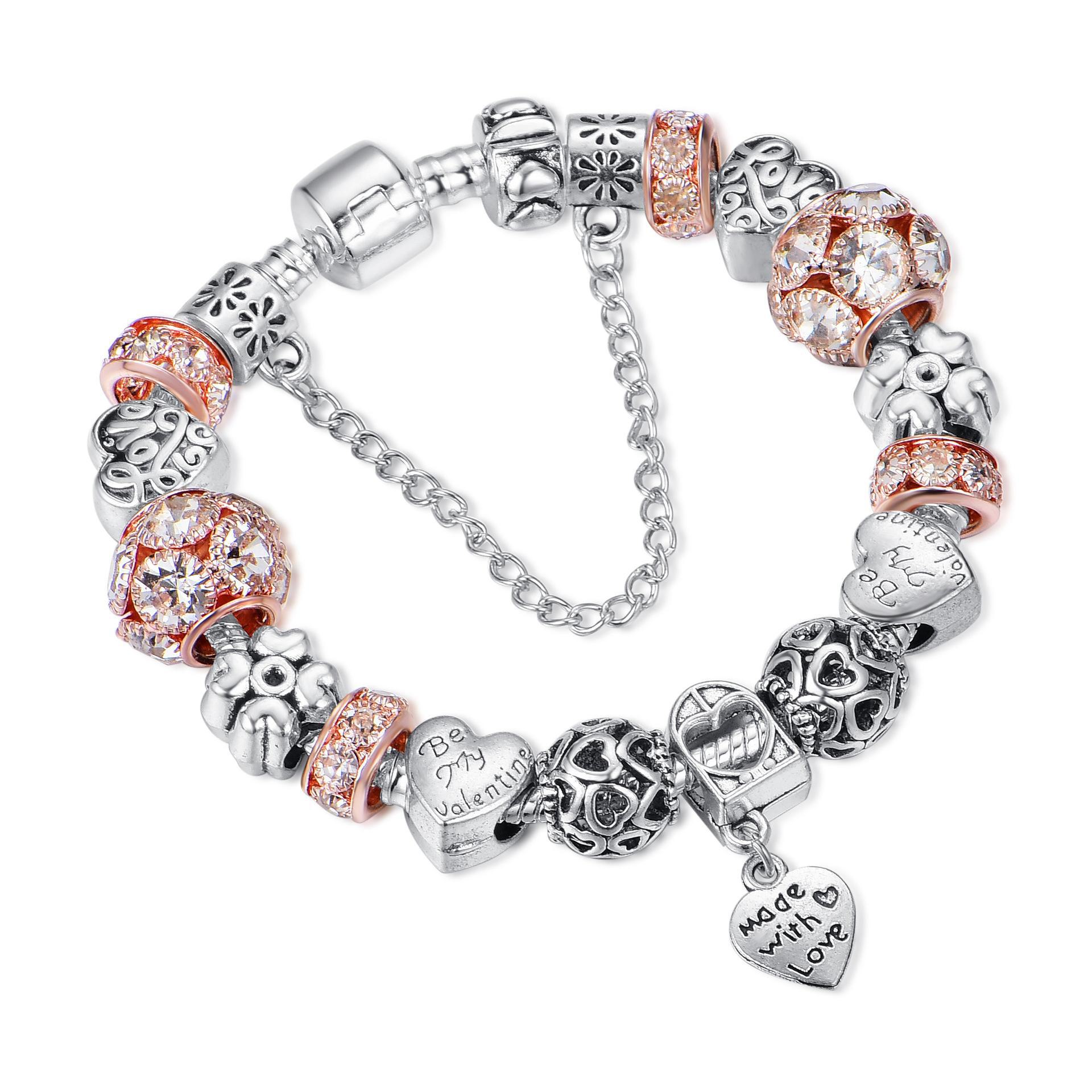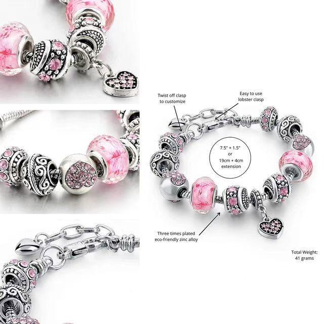 | Pulseira de contas estilo europeu e americano, comércio eletrônico transfronteiriço, faça você mesmo, pingente de coração criativo, pulseira de contas com corrente de extensão |