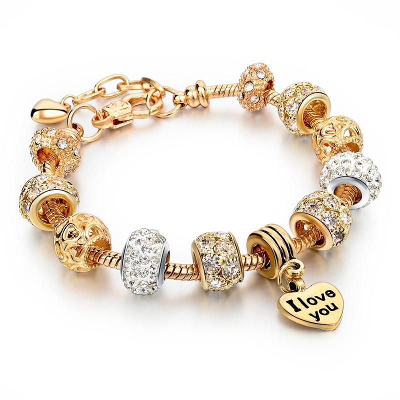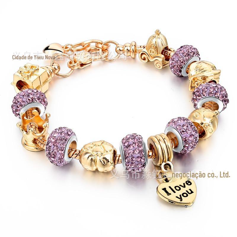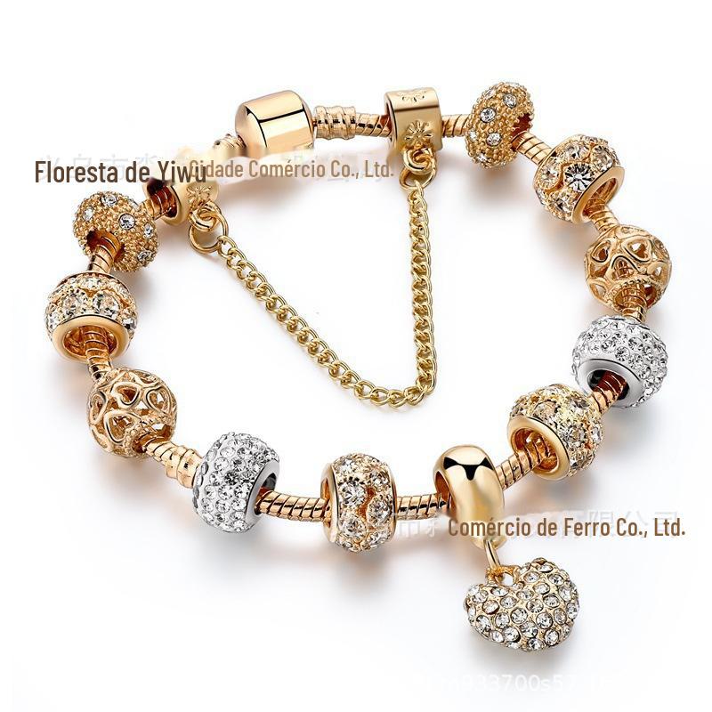 | Pulseira de miçangas banhada a ouro com preservação de cores KC estilo Amazon Pan cheio de diamantes AliExpress |