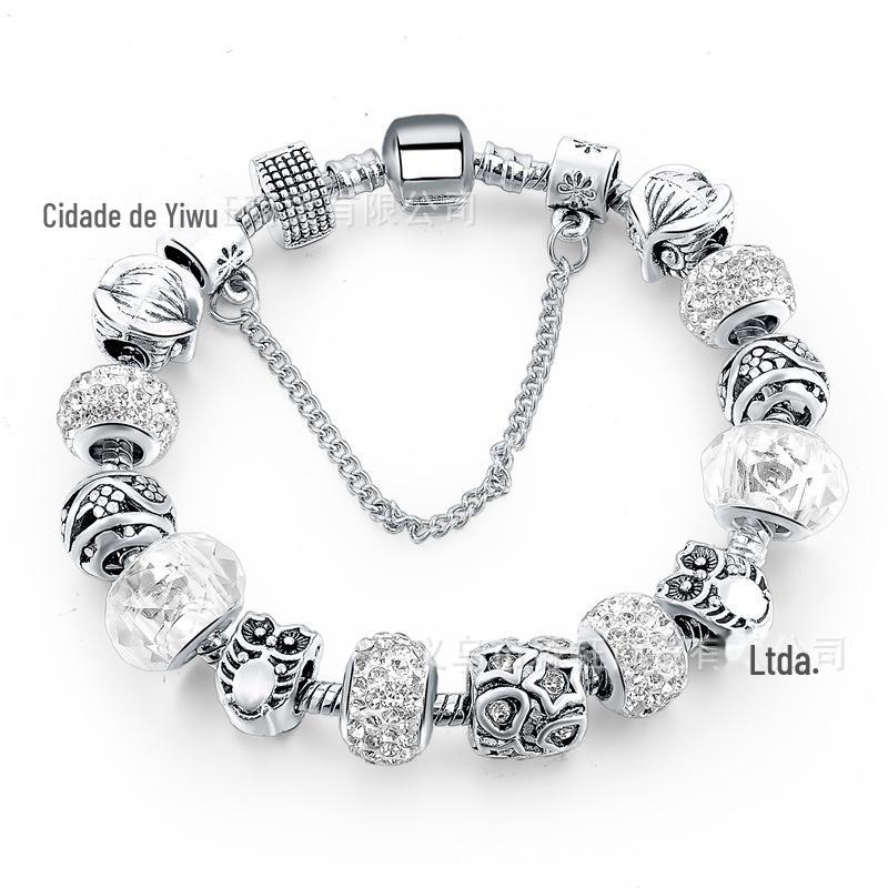 | Joias populares DIY estilo Pan coruja conta diamante coração pulseira fornecimento transfronteiriço |