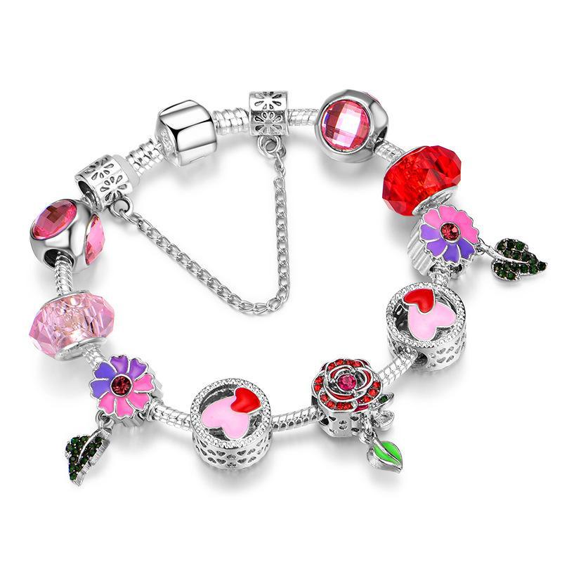| Cross-border novo estilo rosa oco pingente frisado pulseira vermelho rosa cristal grânulo pulseira corrente de osso de cobra |