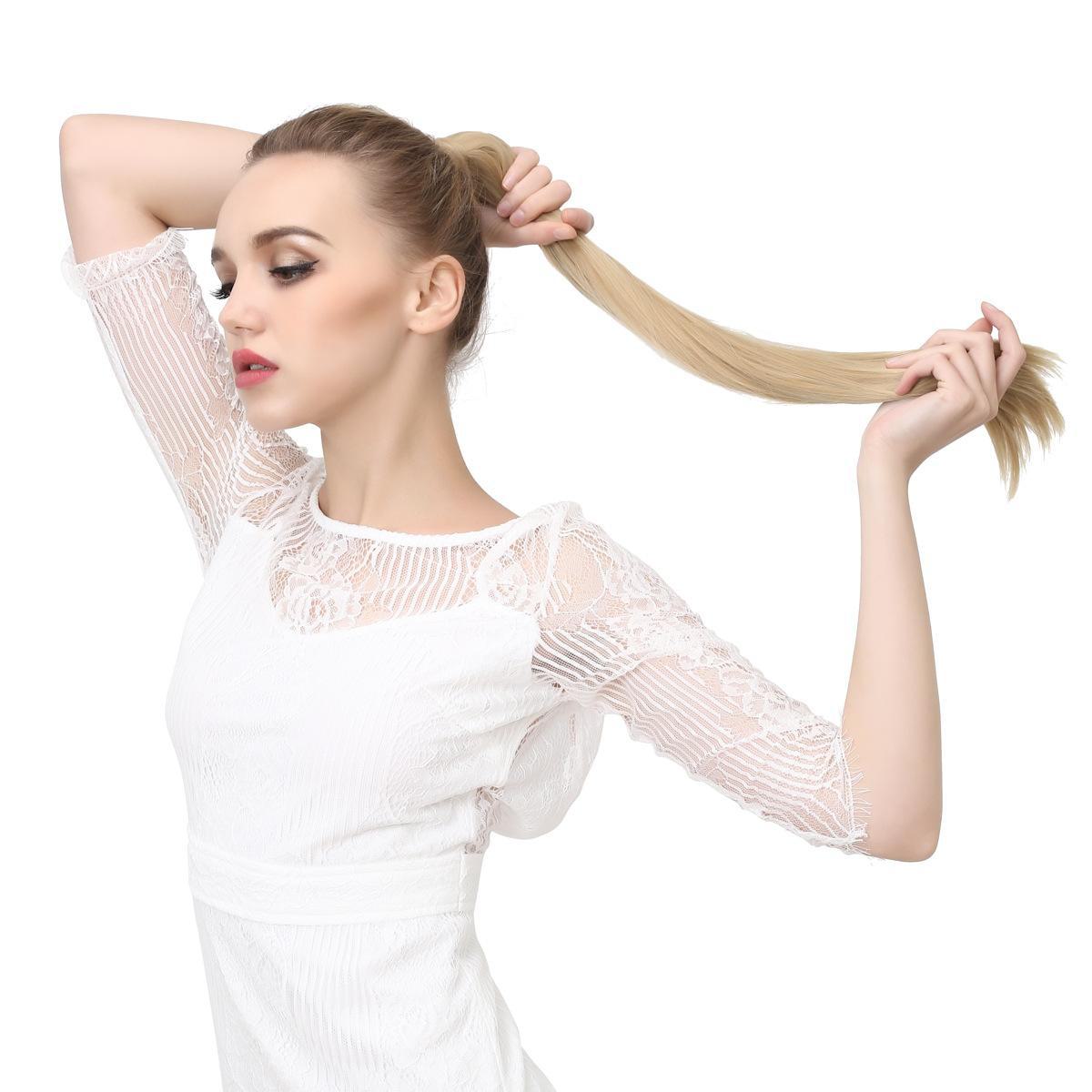 Atributos do produto: rabo de cavalo longo e reto com velcro POO1