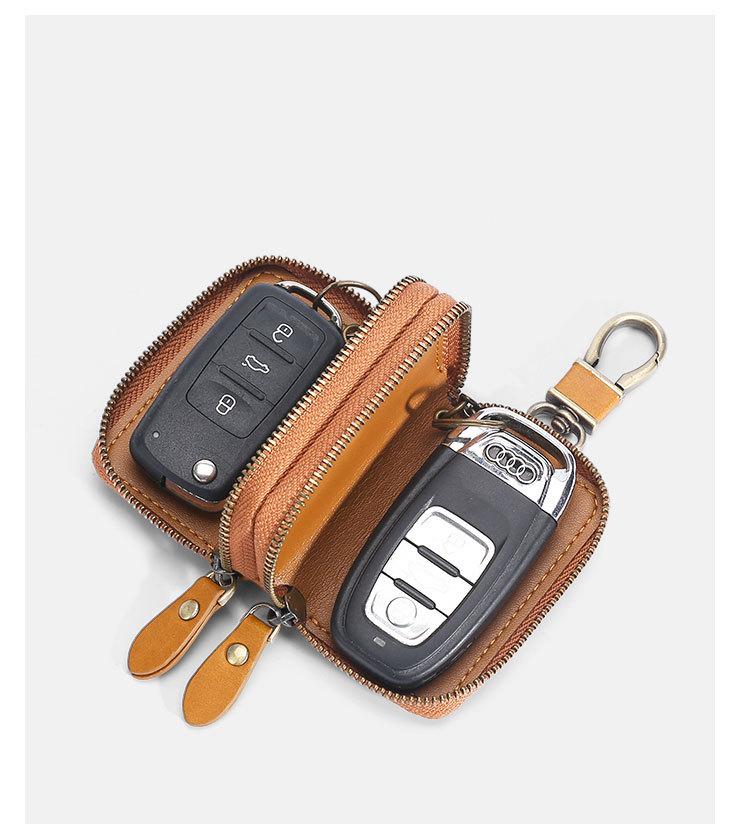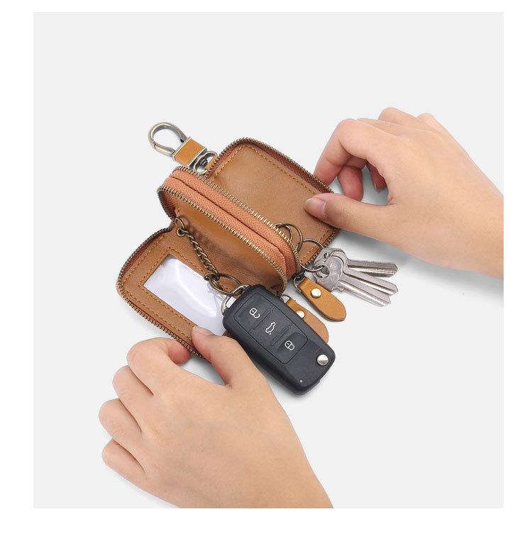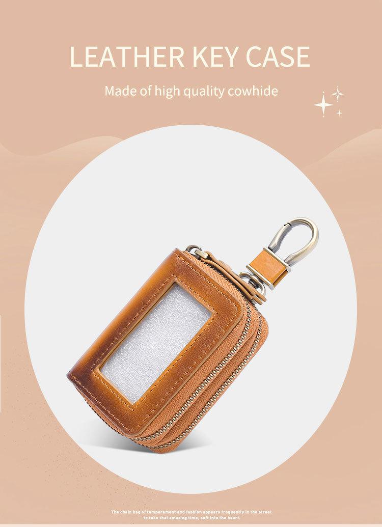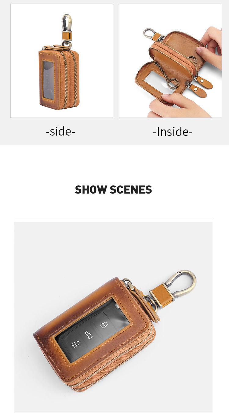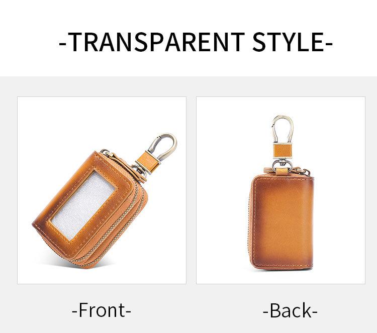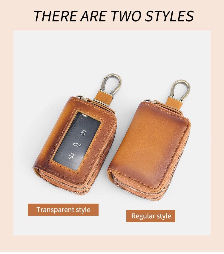 Capa de couro marrom retrô com estampa de cruz, transparente, para chaves de carro, com janela, dupla camada, em couro de cera, para homens
