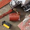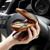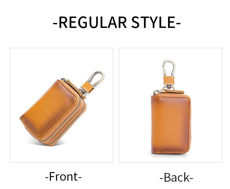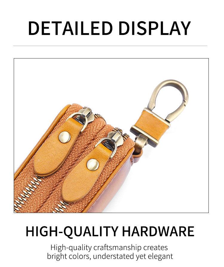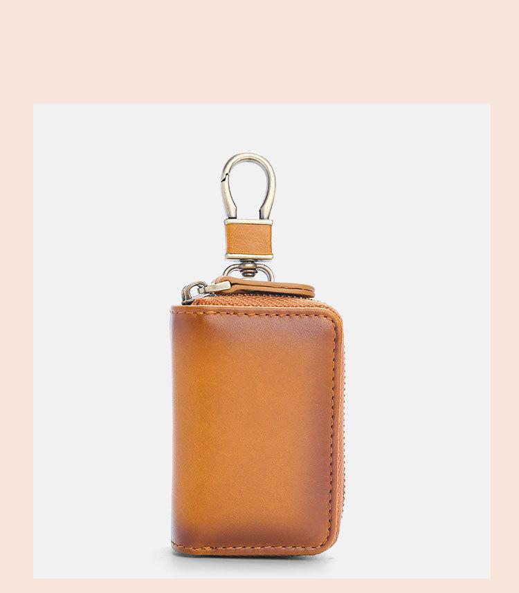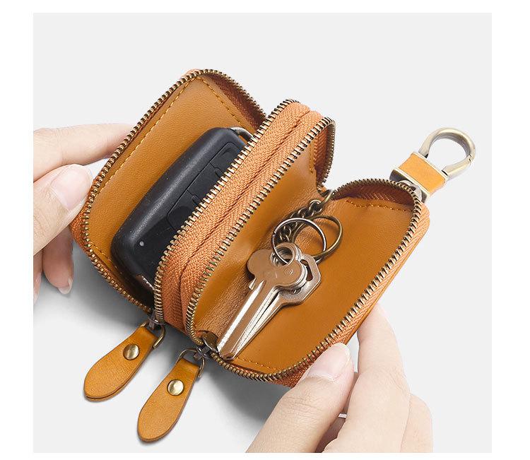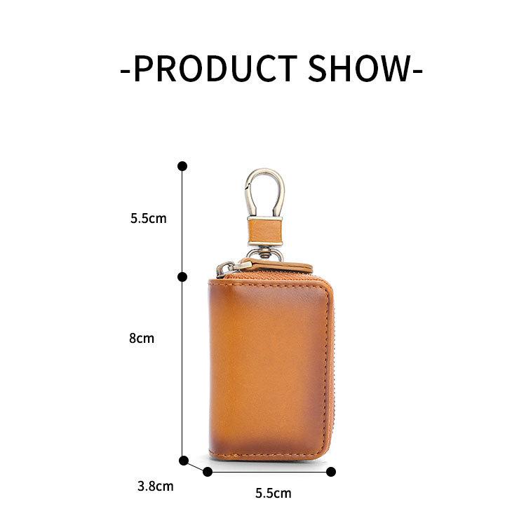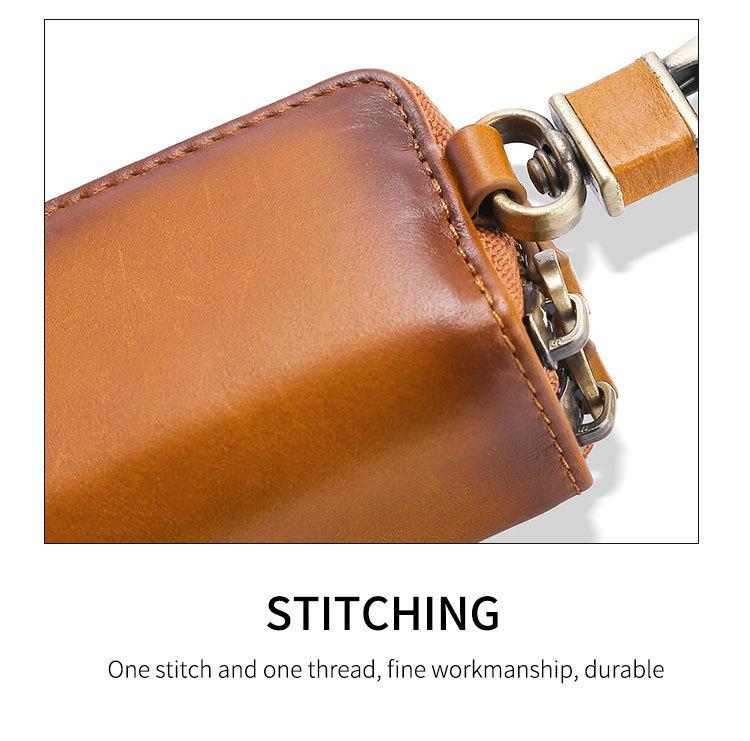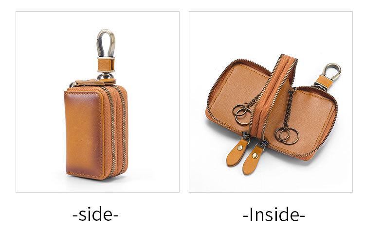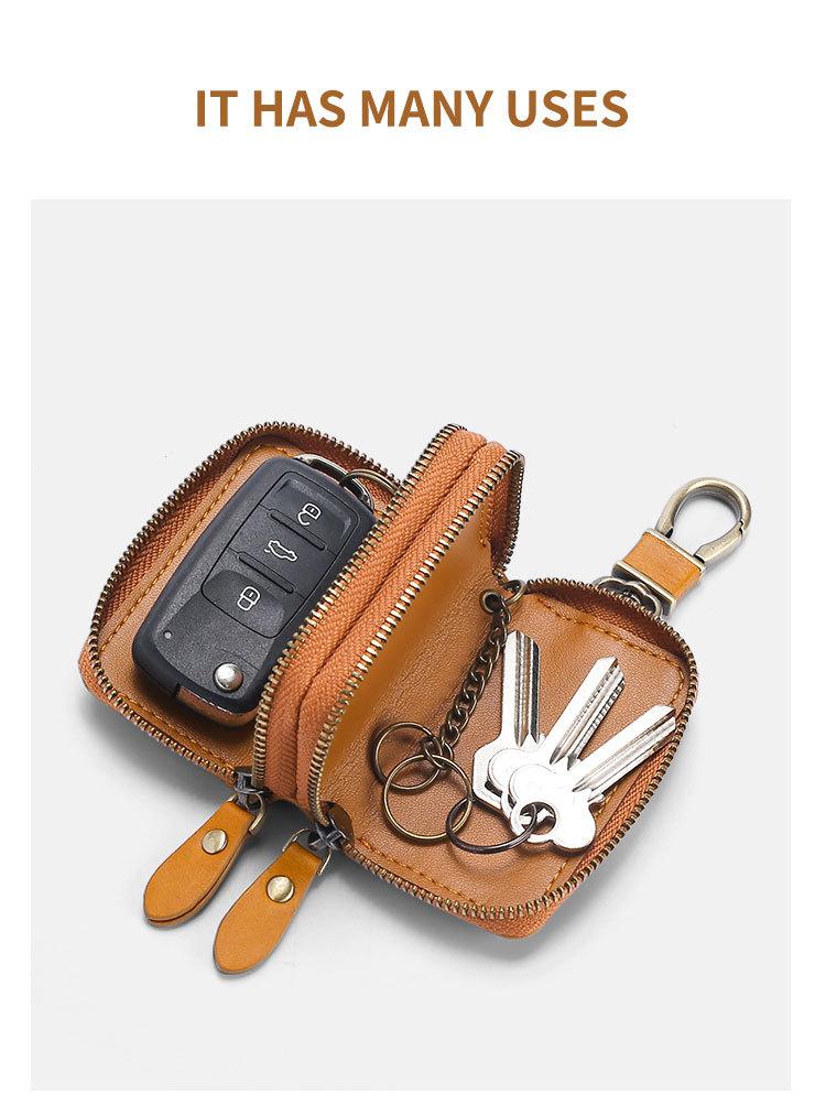 Capa de couro marrom retrô com estampa de cruz, transparente, para chaves de carro, com janela, dupla camada, em couro de cera, para homens