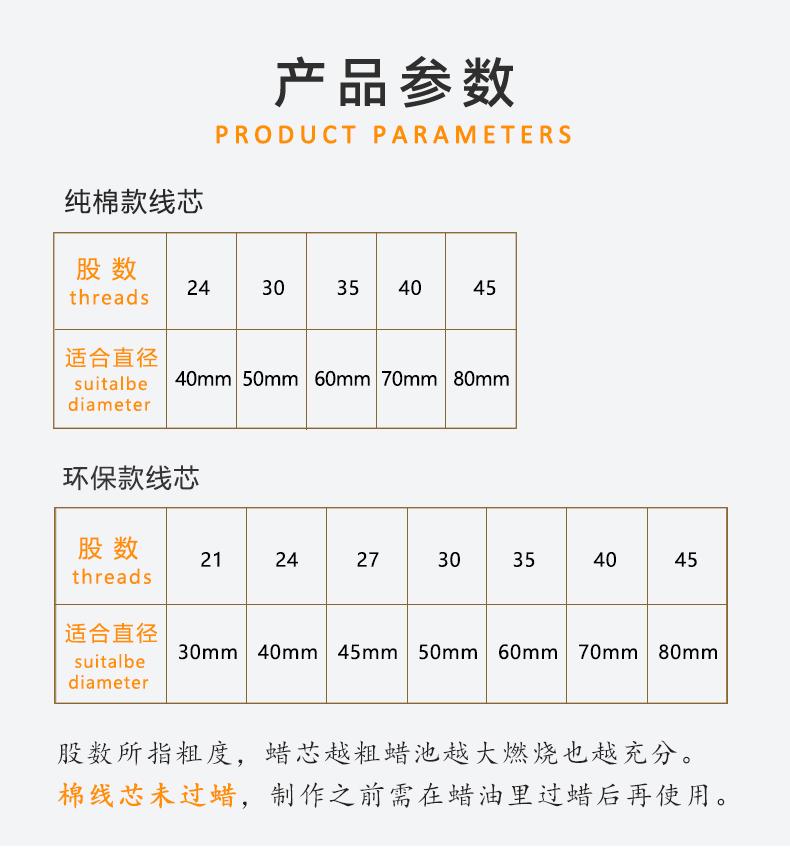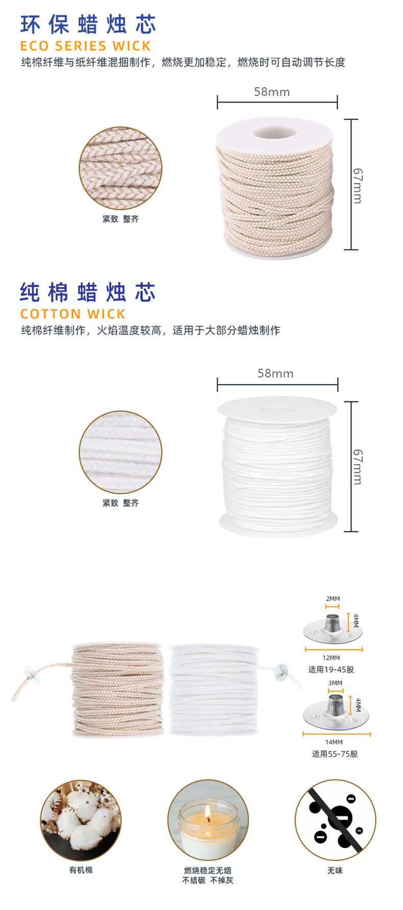 24 strands of pure cotton wax core about 61 meters, 30 strands of pure cotton wax core about 50 meters, 35 str...