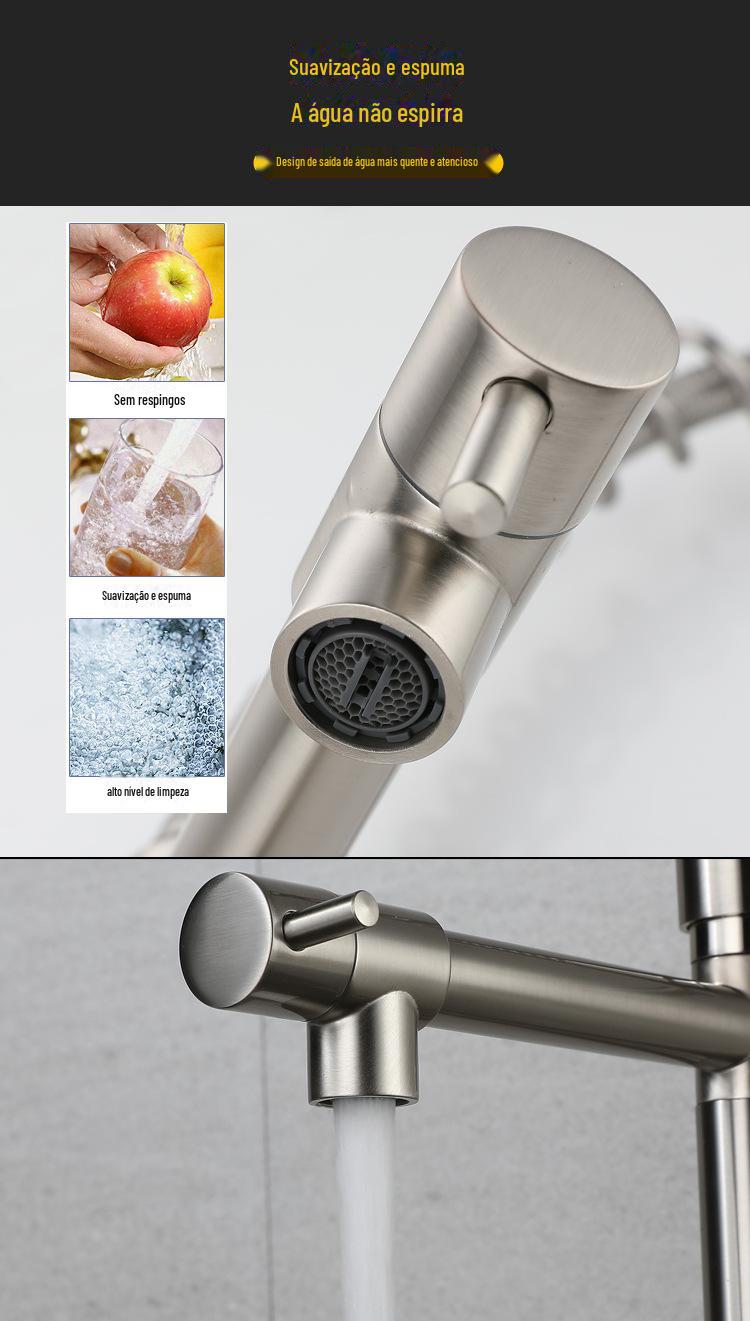 (4) Use detergente para esfregar e descontaminar a superfície regularmente para mantê-la limpa. Não use detergente abrasivo, pano duro, papel toalha ou bola de aço, bem como detergente ou sabão ácido ou áspero. Limpe a superfície da torneira.