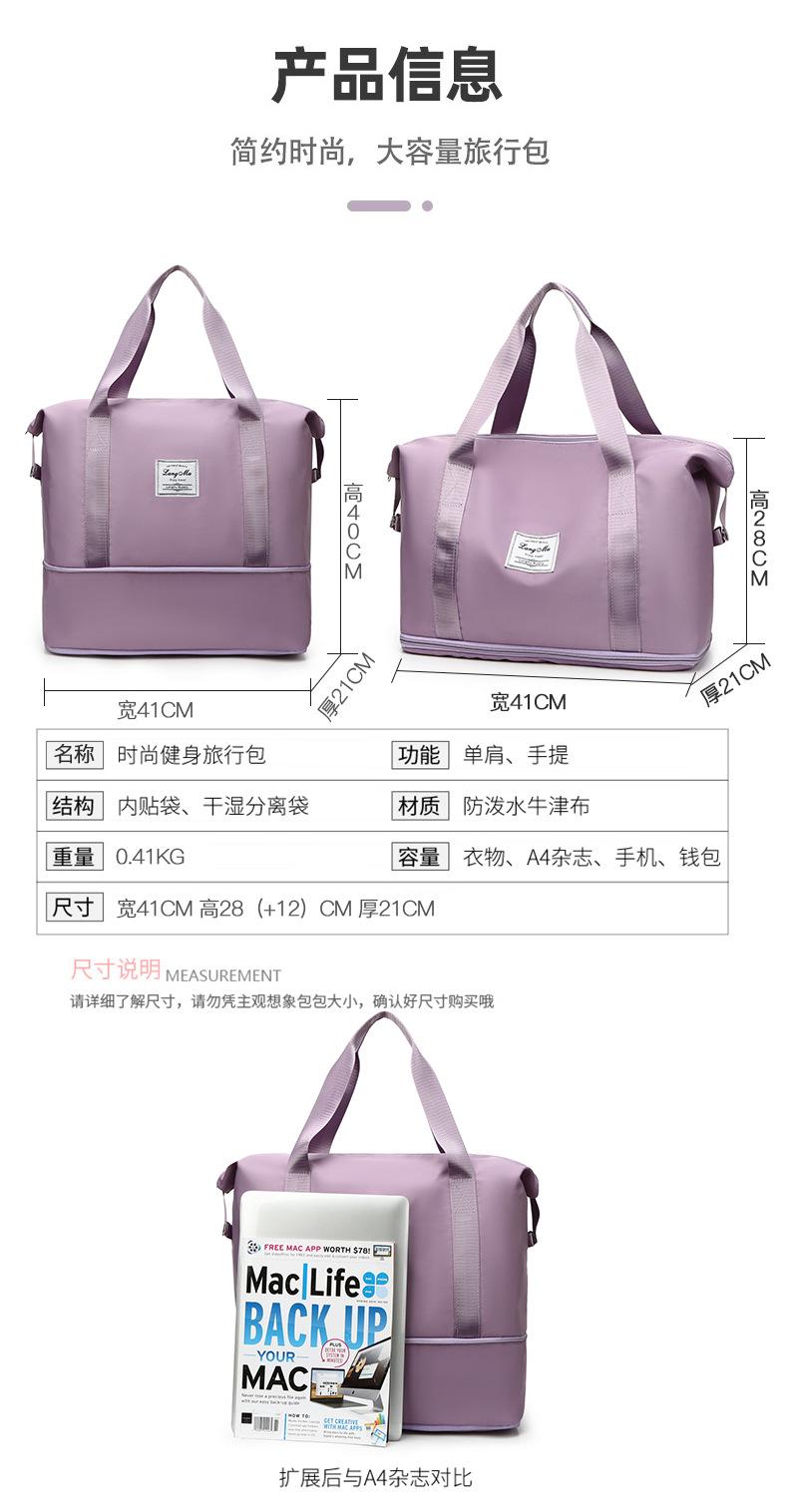 Bolsa de viagem feminina de curta distância portátil de grande capacidade Esportes Fitness Bolsa Leve Armazenamento Bagagem de viagem de negócios Bolsa