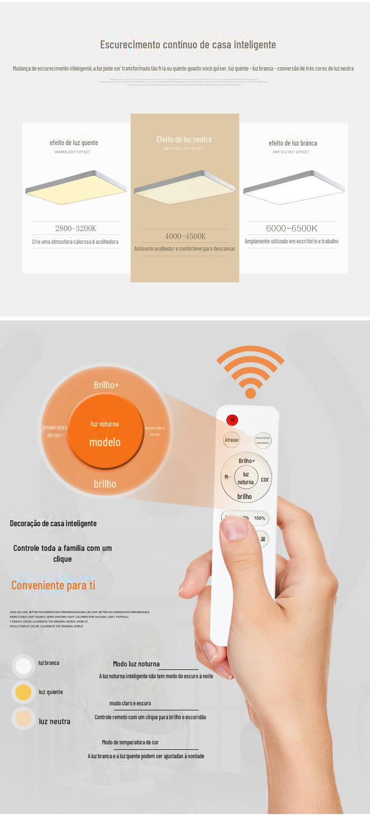 Stepless dimming (white light-warm light-natural light) with remote control