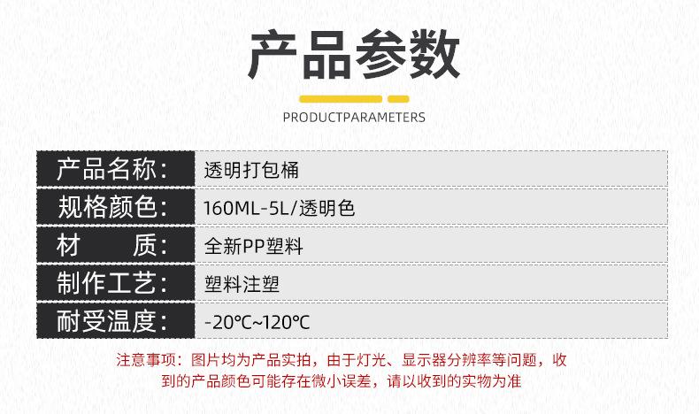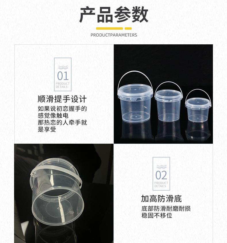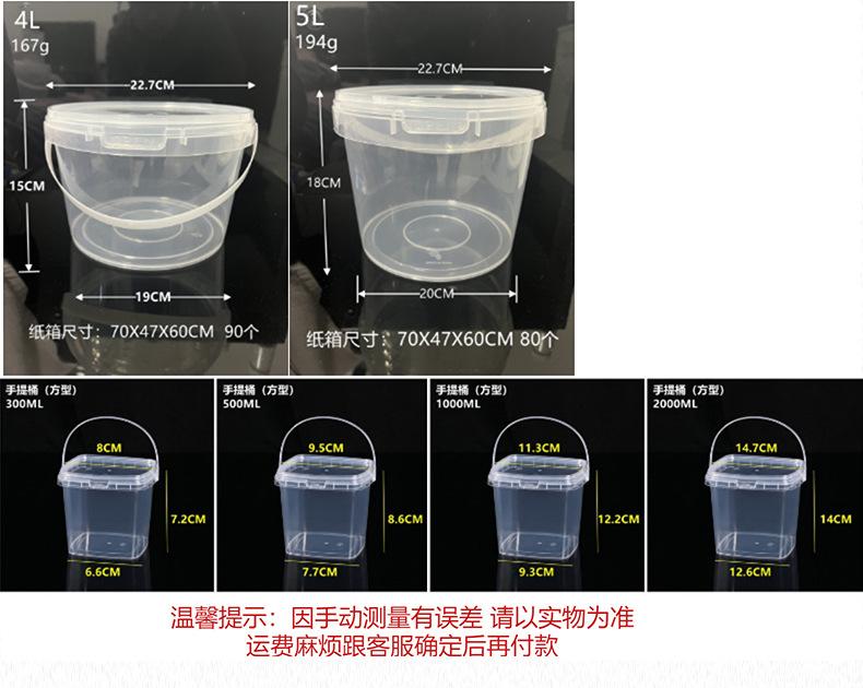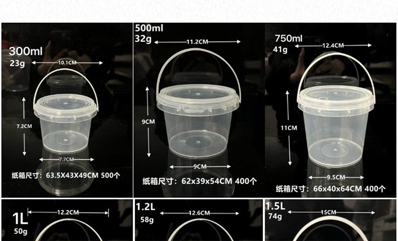 Balde de embalagem PP Balde de chá de frutas multiespecificações Balde de gelo em pó Balde de chá de leite portátil Balde de armazenamento de embalagem selada Balde transparente