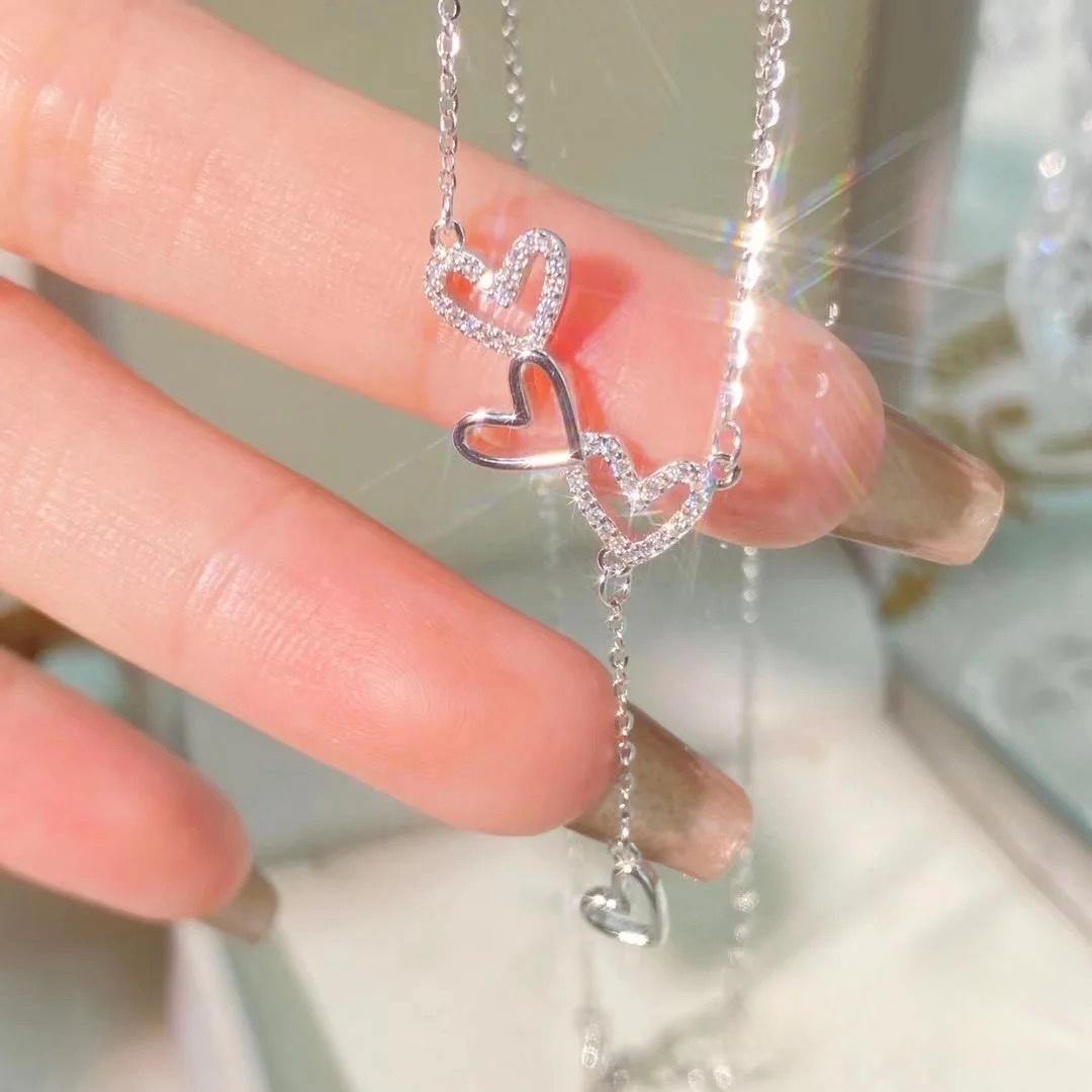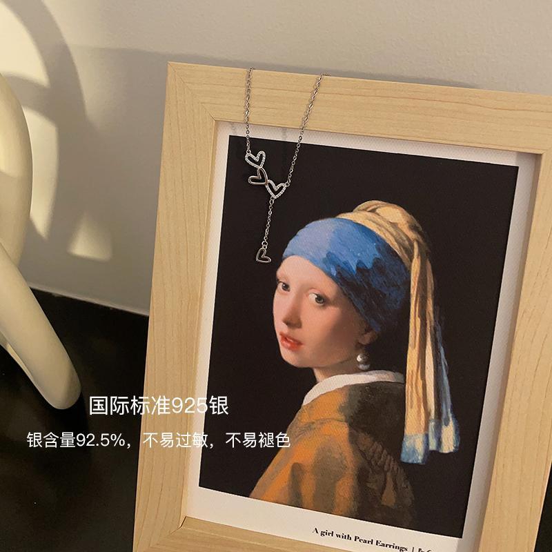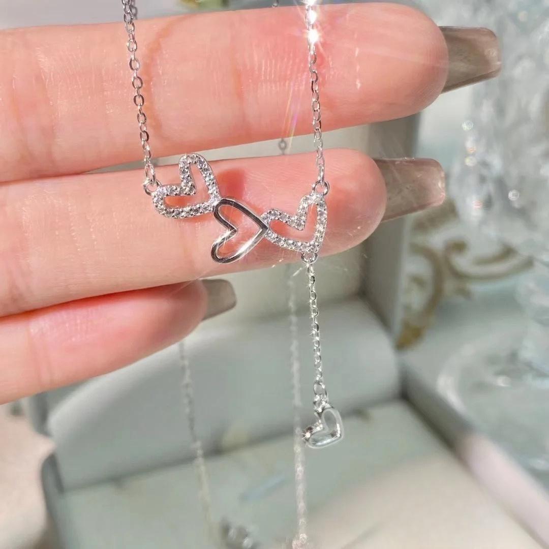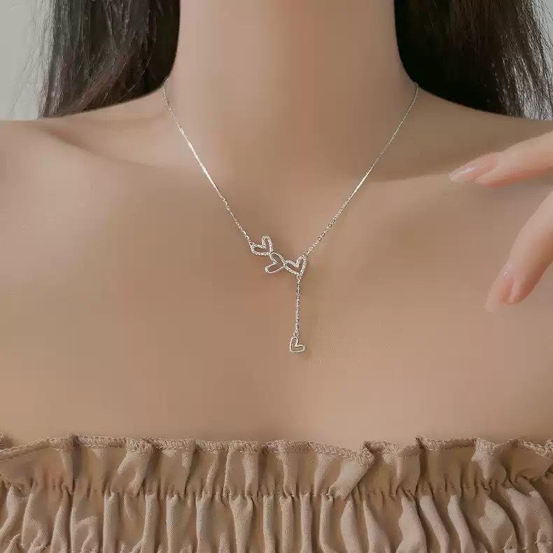 Silver Shell S925 sterling colar de prata amor tassel clavicle chain Mulheres temperamento doce simples ao vivo TikTok deve pesquisar