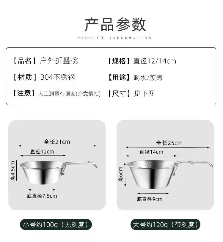 Mesa de acampamento ao ar livre tigela dobrável louça de mesa portátil aço inoxidável camping xícara de café instantâneo macarrão tigela piquenique Snow Bowl