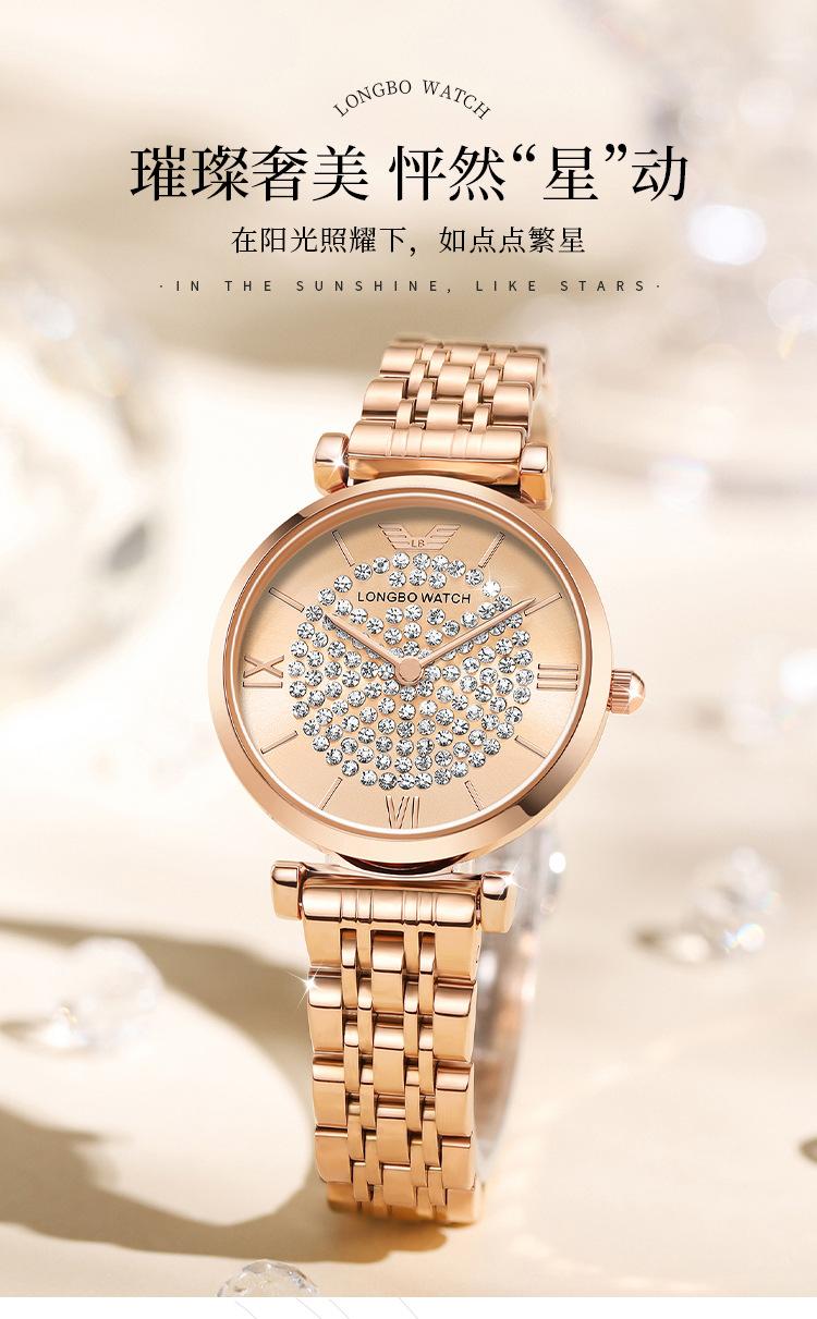 Compre LONGBO LONGBO marca Starry Women's Watch TikTok ao vivo venda quente relógio de quartzo impermeável relógio feminino atacado no atacado no Joom.pro