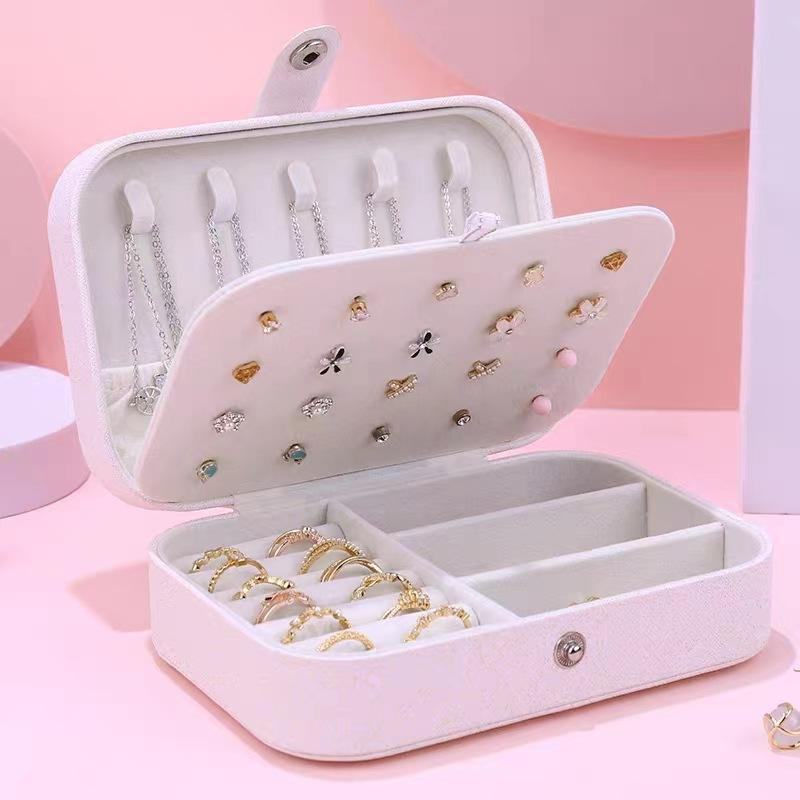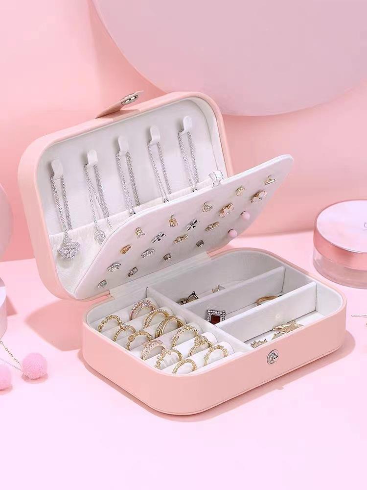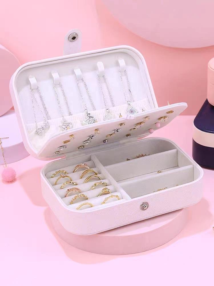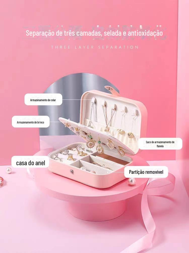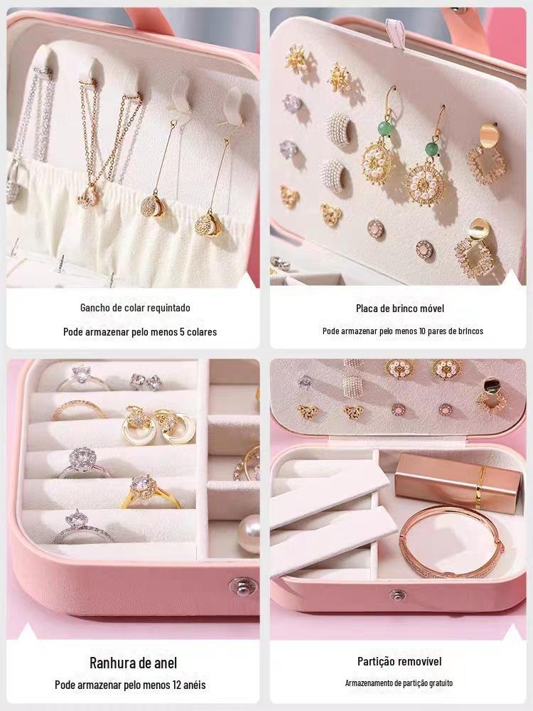 Fornecimento Direto da Fábrica Caixa de Joias de PU Transfronteiriça Caixa de Armazenamento de Brincos Colares Anéis Dupla Camada Grande Capacidade Caixa de Joias Portátil
