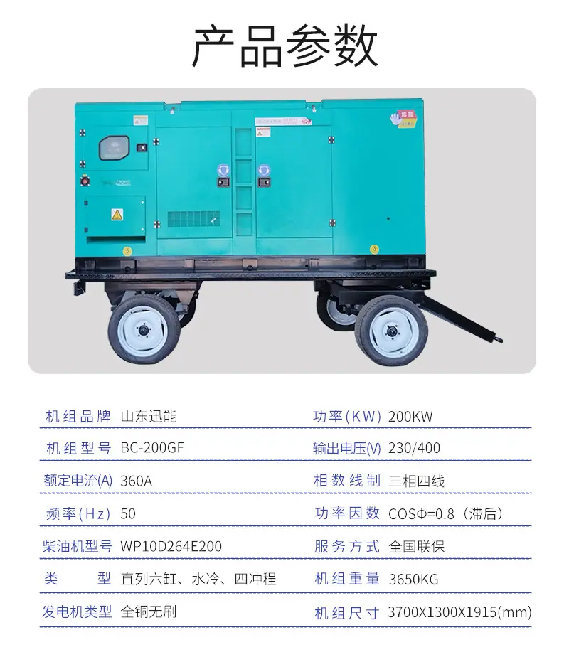 Grupo Gerador Diesel 200kW Baixo Consumo de Combustível Baixo Ruído Gerador Weichai 200kW Weichai Móvel Reboque Silencioso