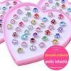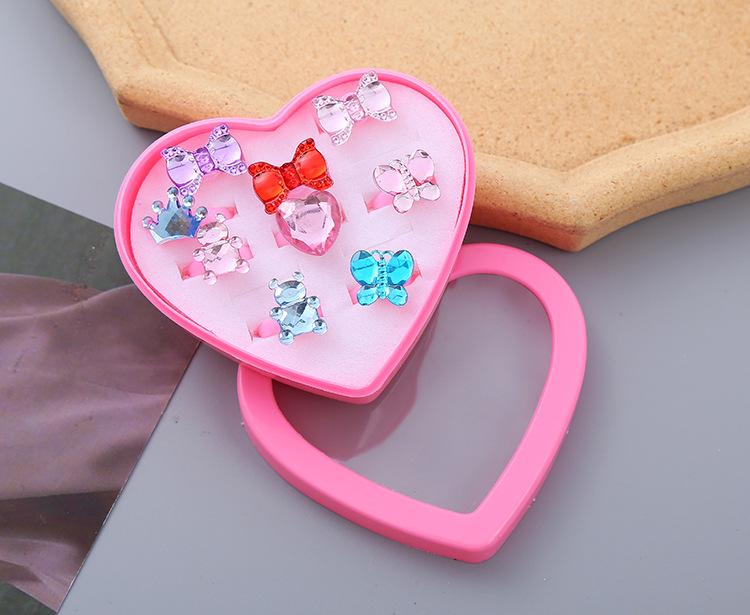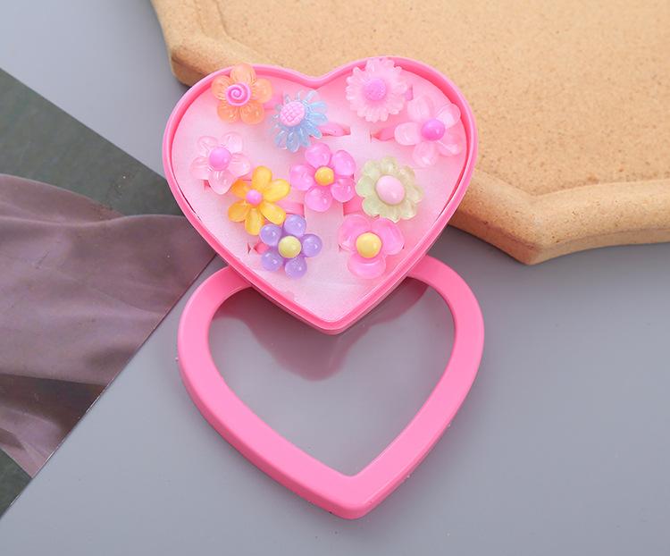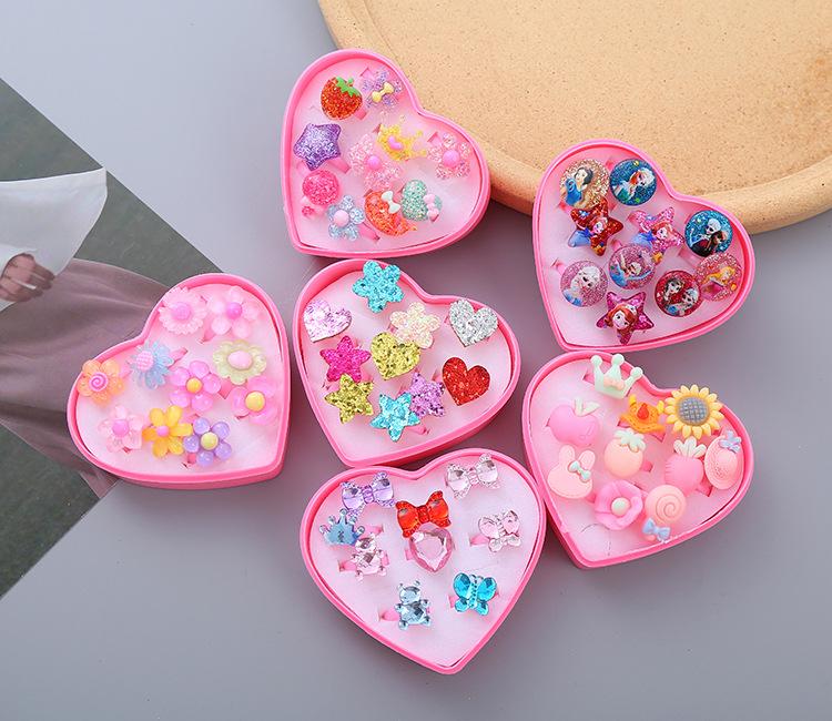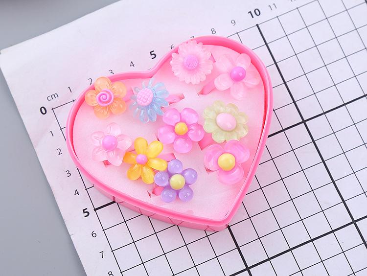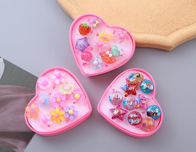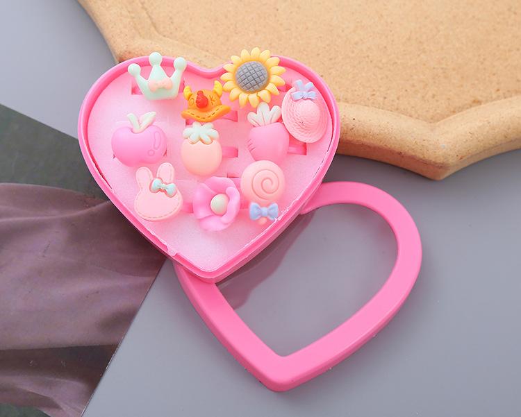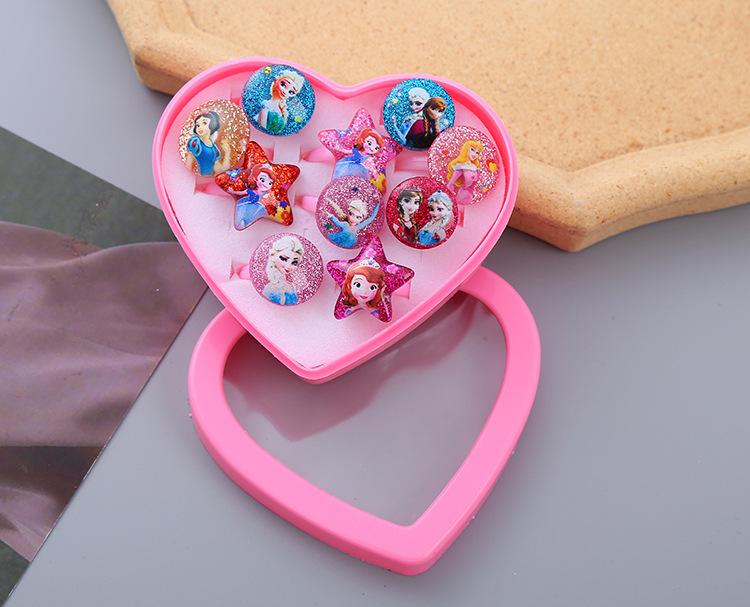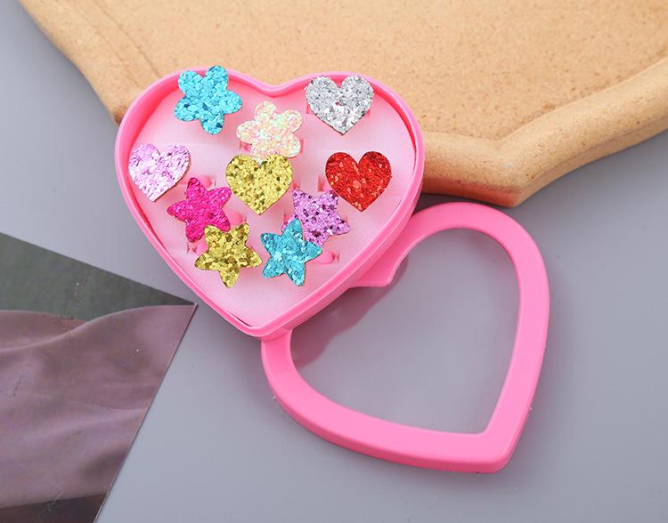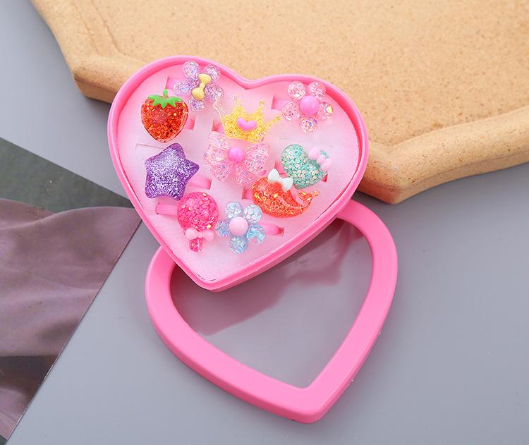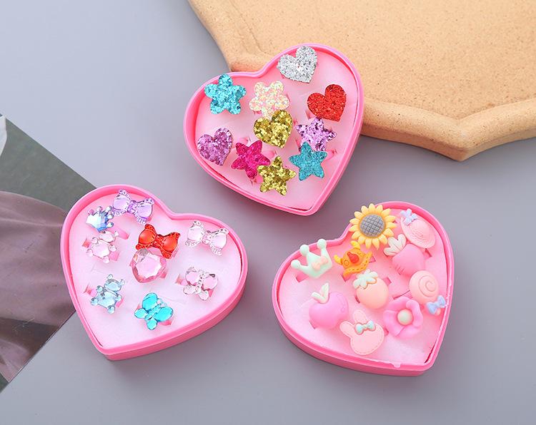 Anel infantil meninas 10 peças caixa de presente glitter resina amor princesa joias anel de alto valor crianças
