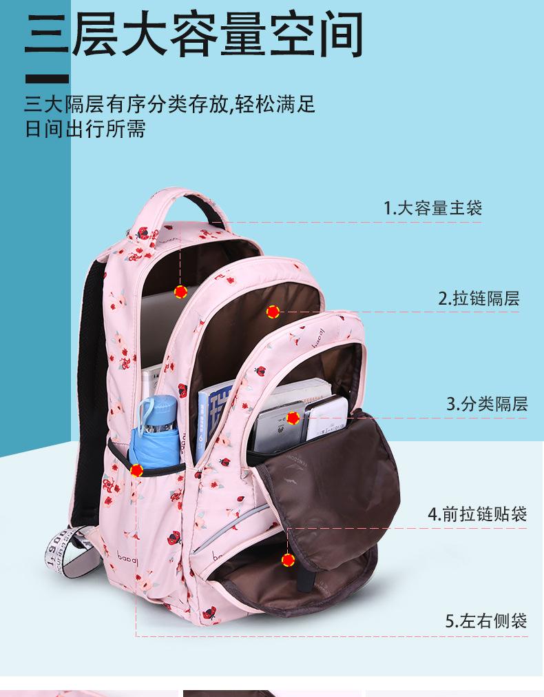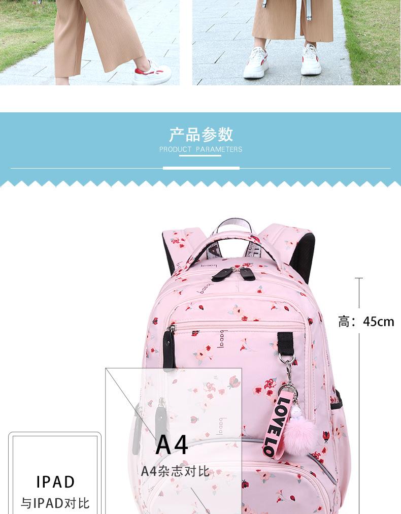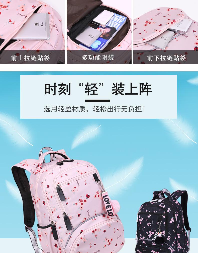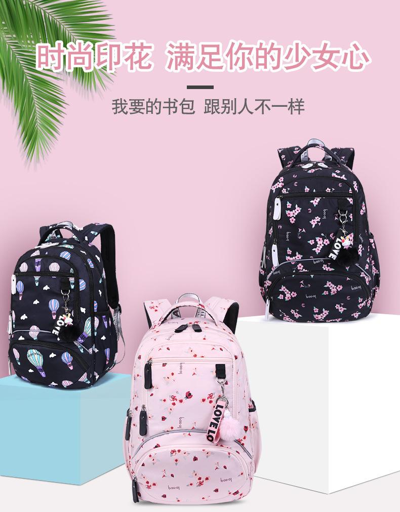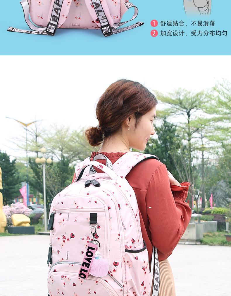 Mochila Feminina Casual para Estudantes do Ensino Fundamental e Médio Bolsa Escolar Versão Coreana Grande Capacidade Multicamadas Bolsa de Viagem Mochila Leve Estampada