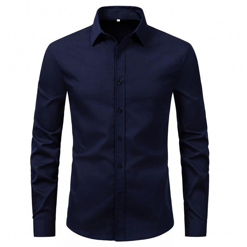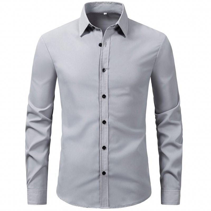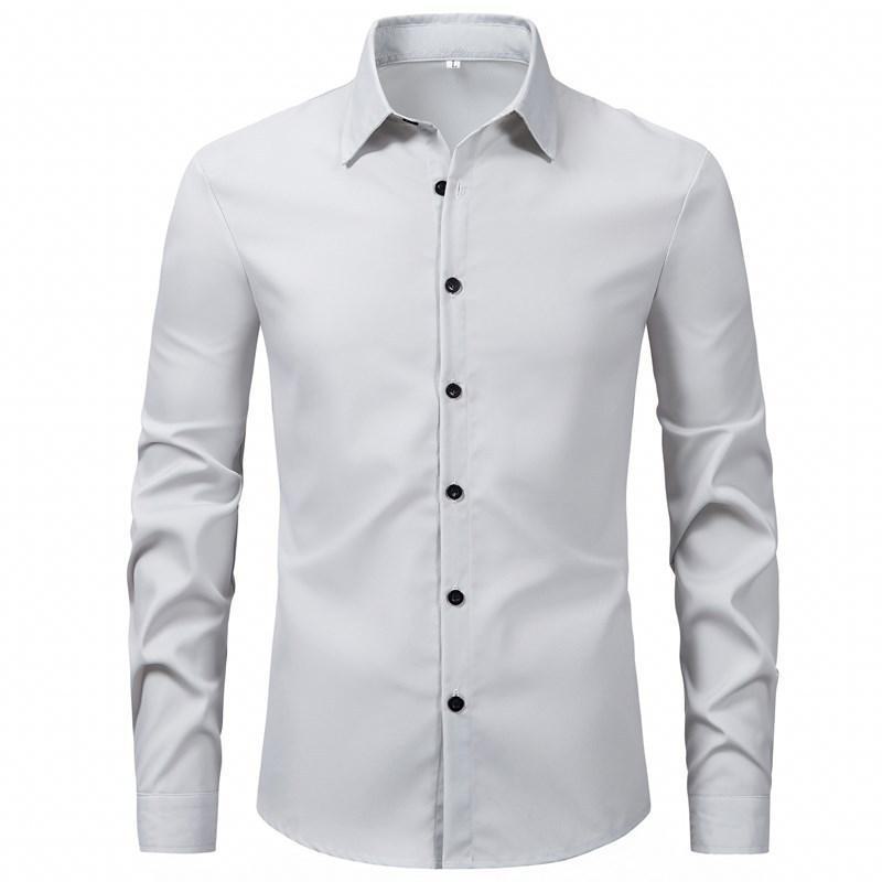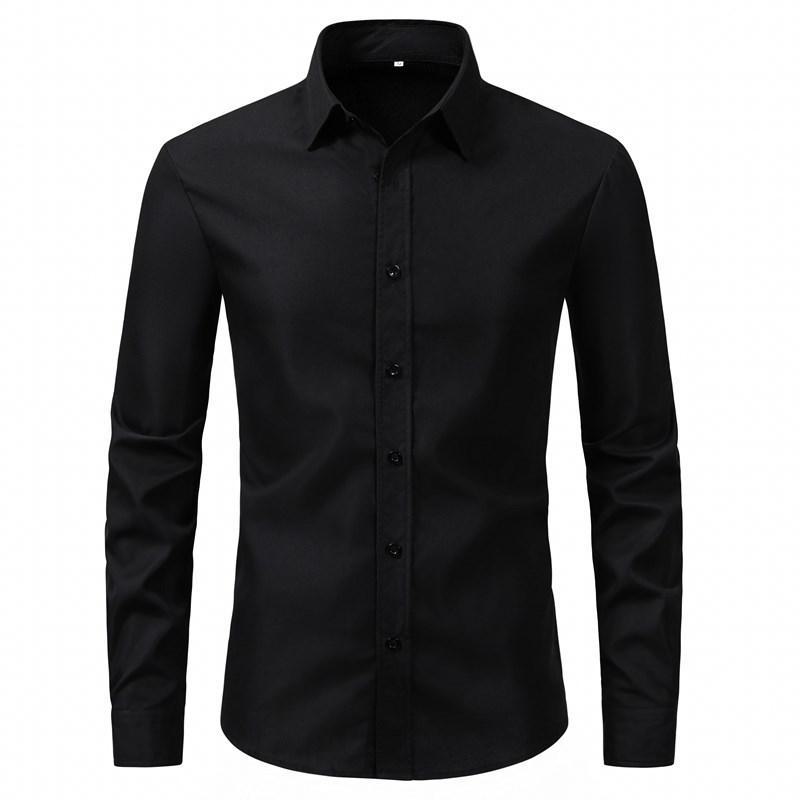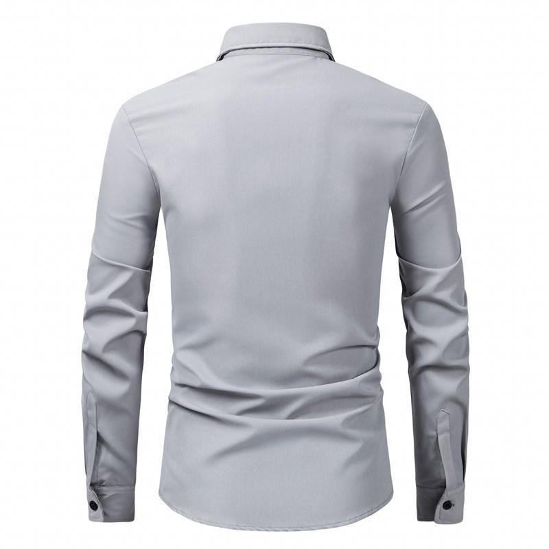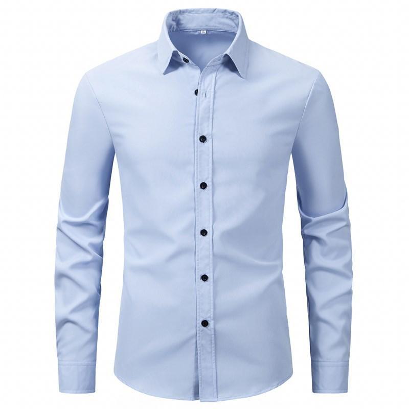 Camisa Masculina Nova de Exportação Europeia e Americana Transfronteiriça 2025 de Manga Comprida com Lapela Cor Pura Moda Masculina Casual Camisa Masculina