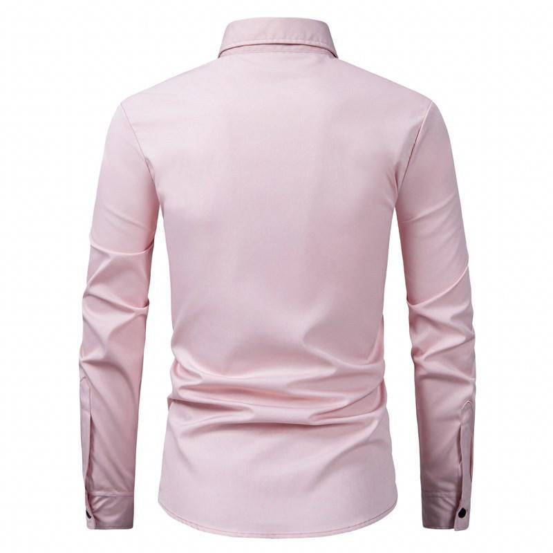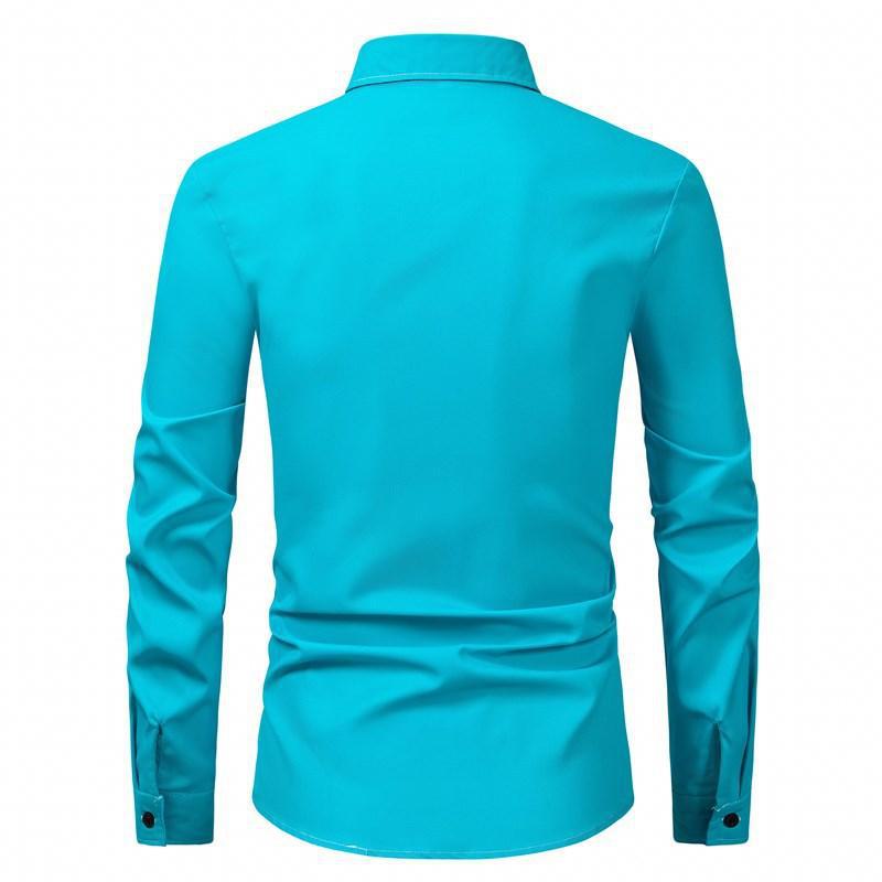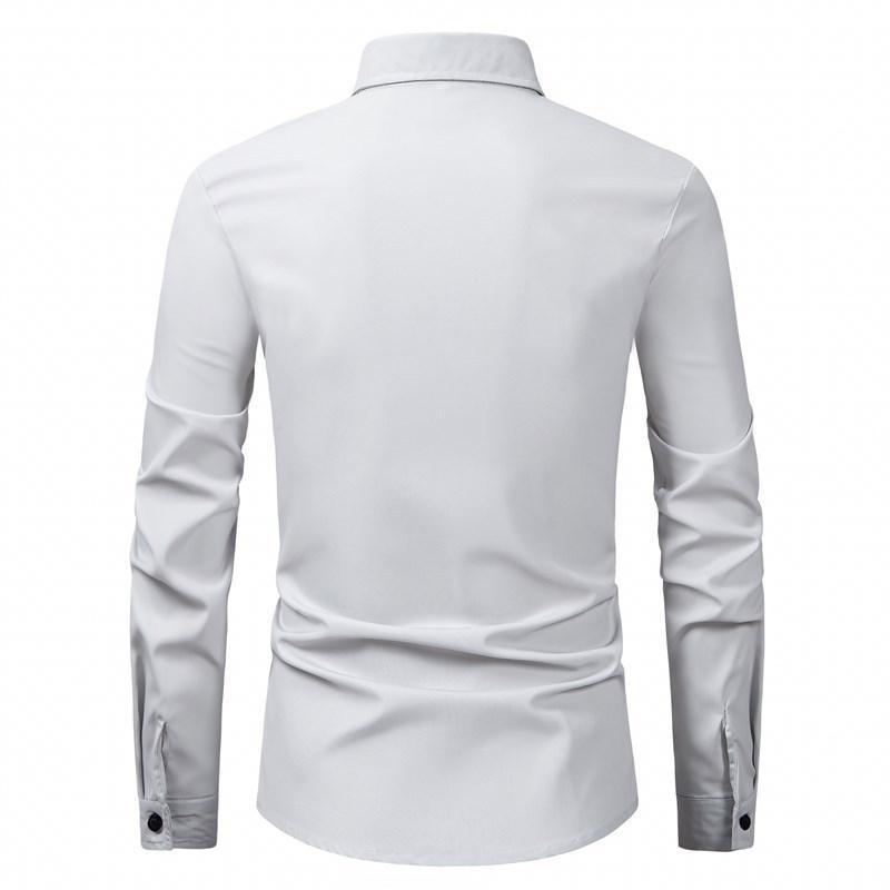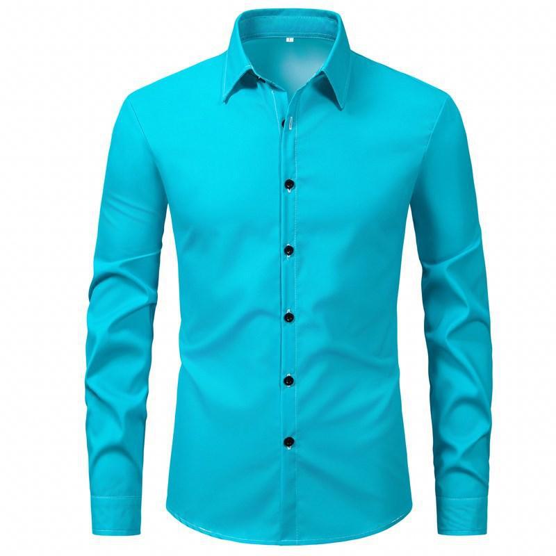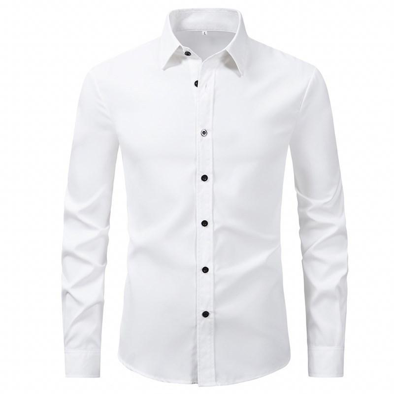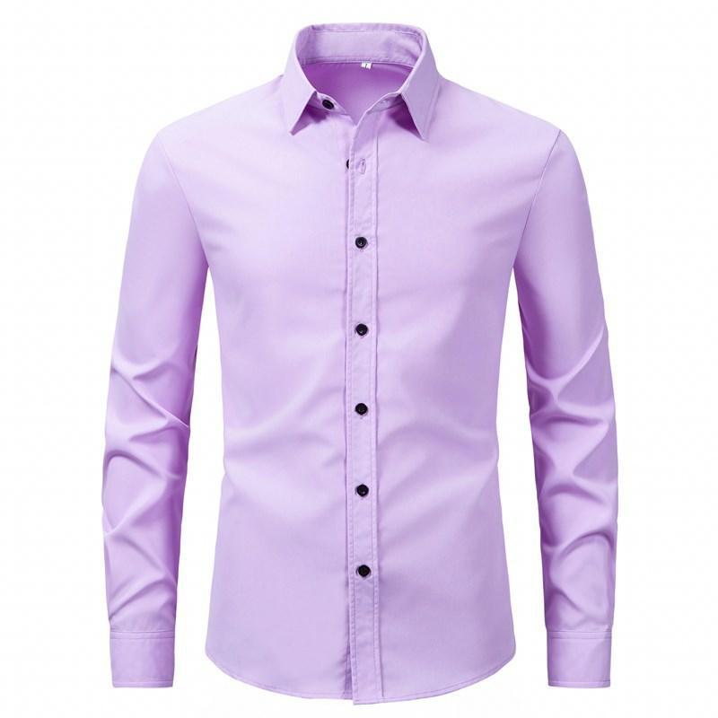 Camisa Masculina Nova de Exportação Europeia e Americana Transfronteiriça 2025 de Manga Comprida com Lapela Cor Pura Moda Masculina Casual Camisa Masculina