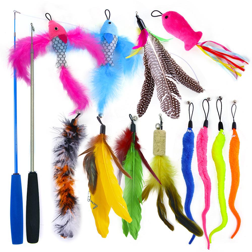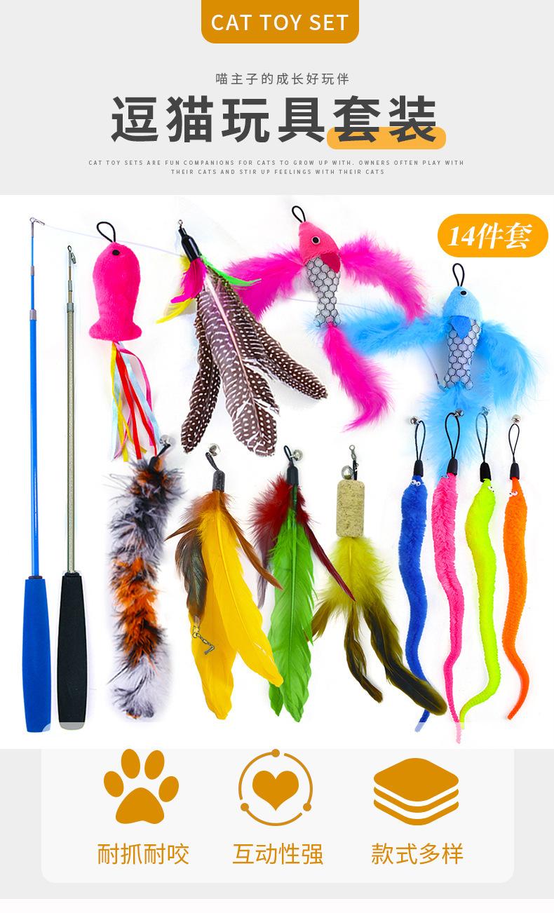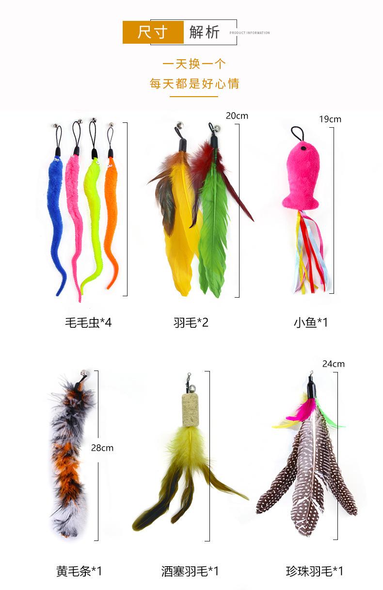 Conjunto de brinquedos de gato transfronteiriço Caterpillar pena cabeça de substituição garrafa de vinho rolha pena retrátil vara de pesca gato teaser