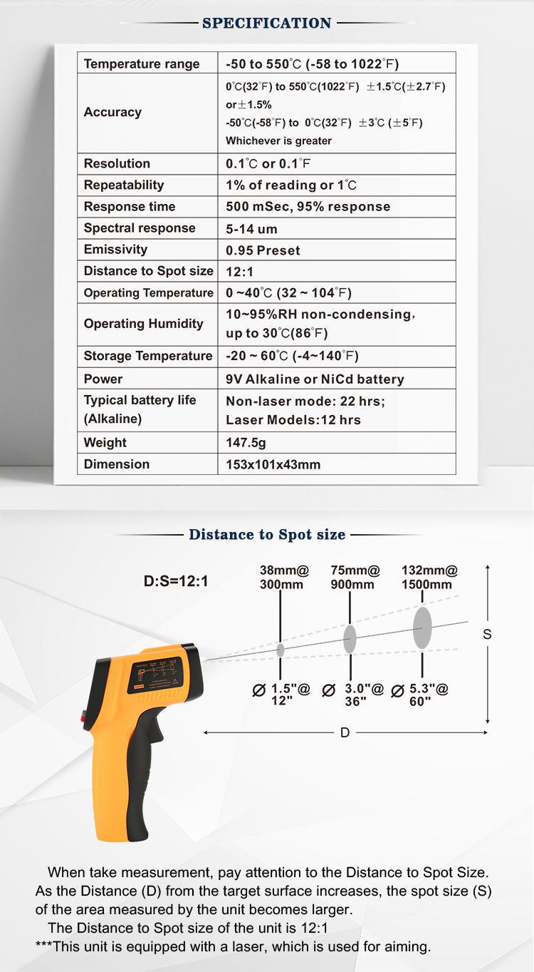 GM550 termômetro infravermelho de alta precisão para superfície de objeto industrial
