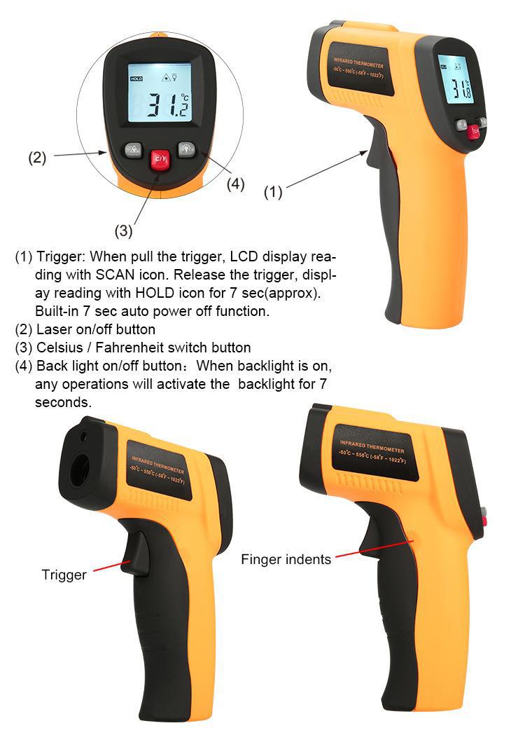 Blister cardboard manual battery temperature gun