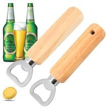 Abridor de garrafas de cerveja com cabo de madeira, abridor de garrafas de aço inoxidável, abridor de garrafas de água simples, abridor de garrafas de madeira em estoque