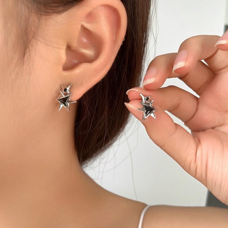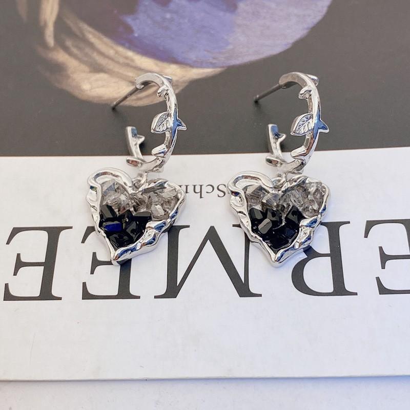 Coleção de brincos pretos doce cool nicho design sense ins estilo frio leve luxo amor coração gato temperamento brincos