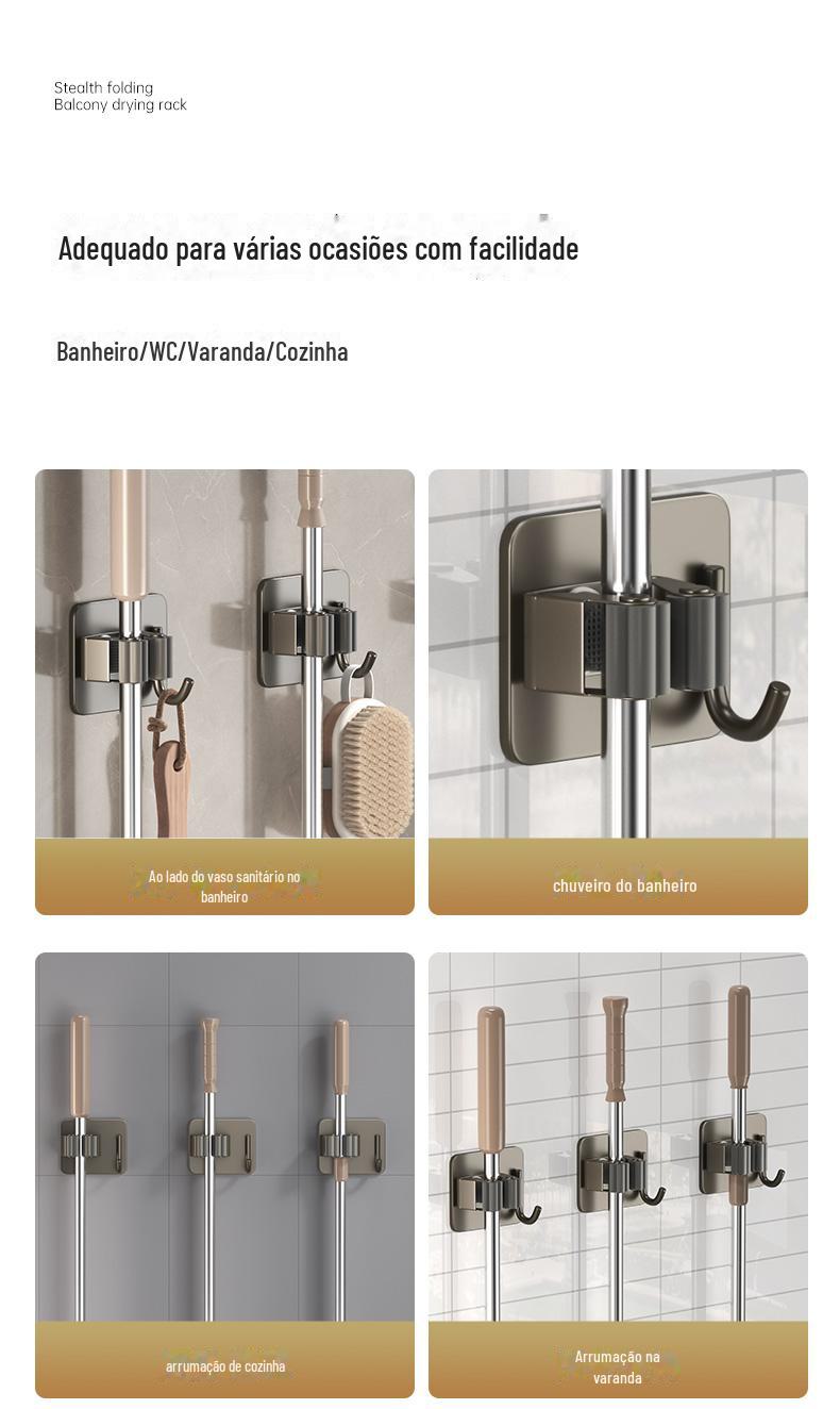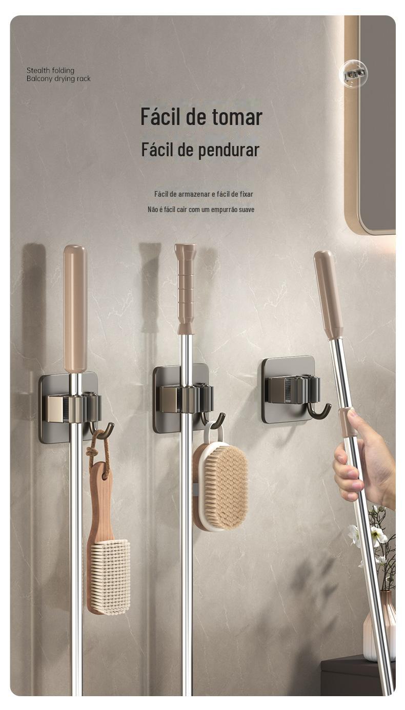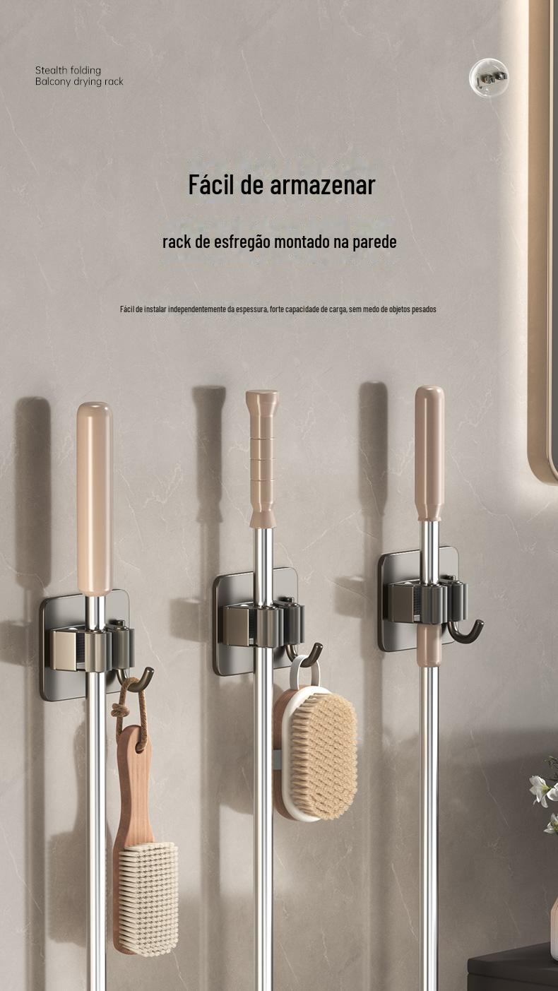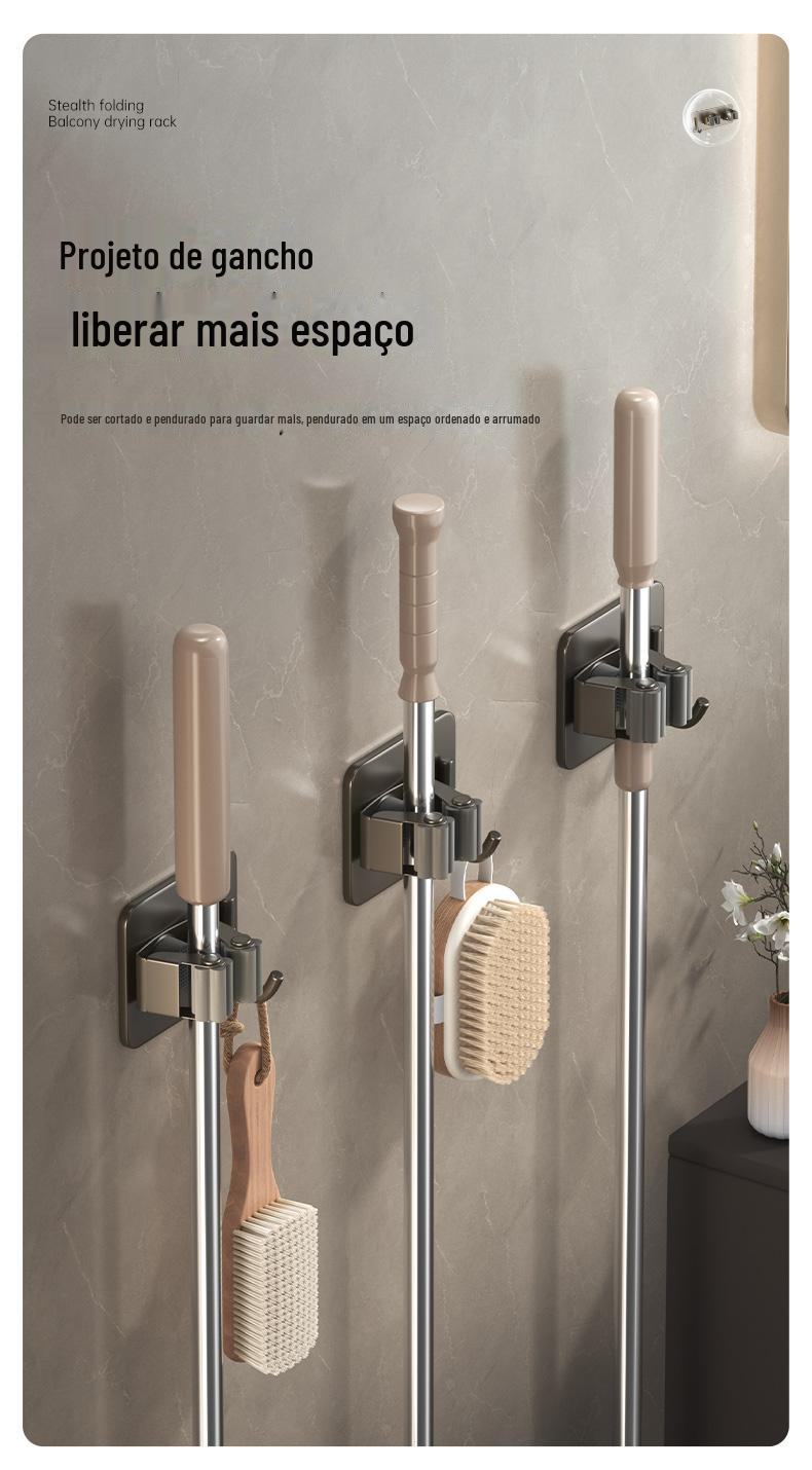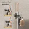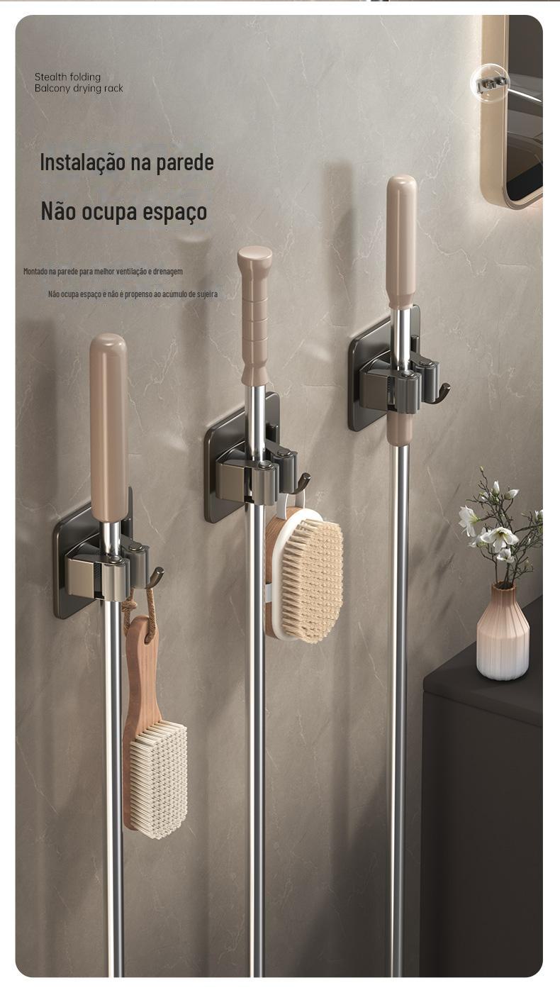Mop Rack de aço inoxidável Mop Gancho de vaso sanitário Cabide Mop Clip Punch-free Parede montada Gun Gun Ash