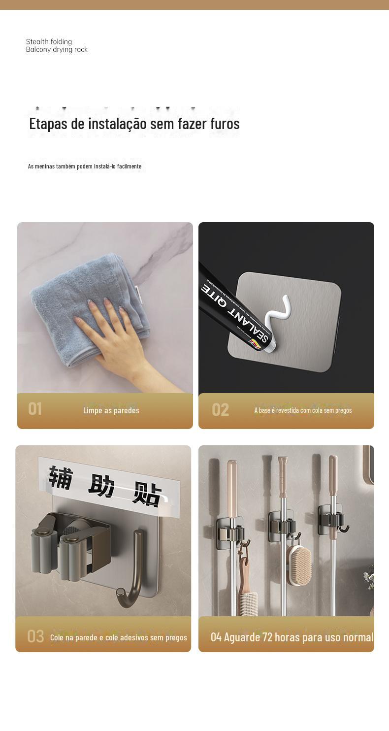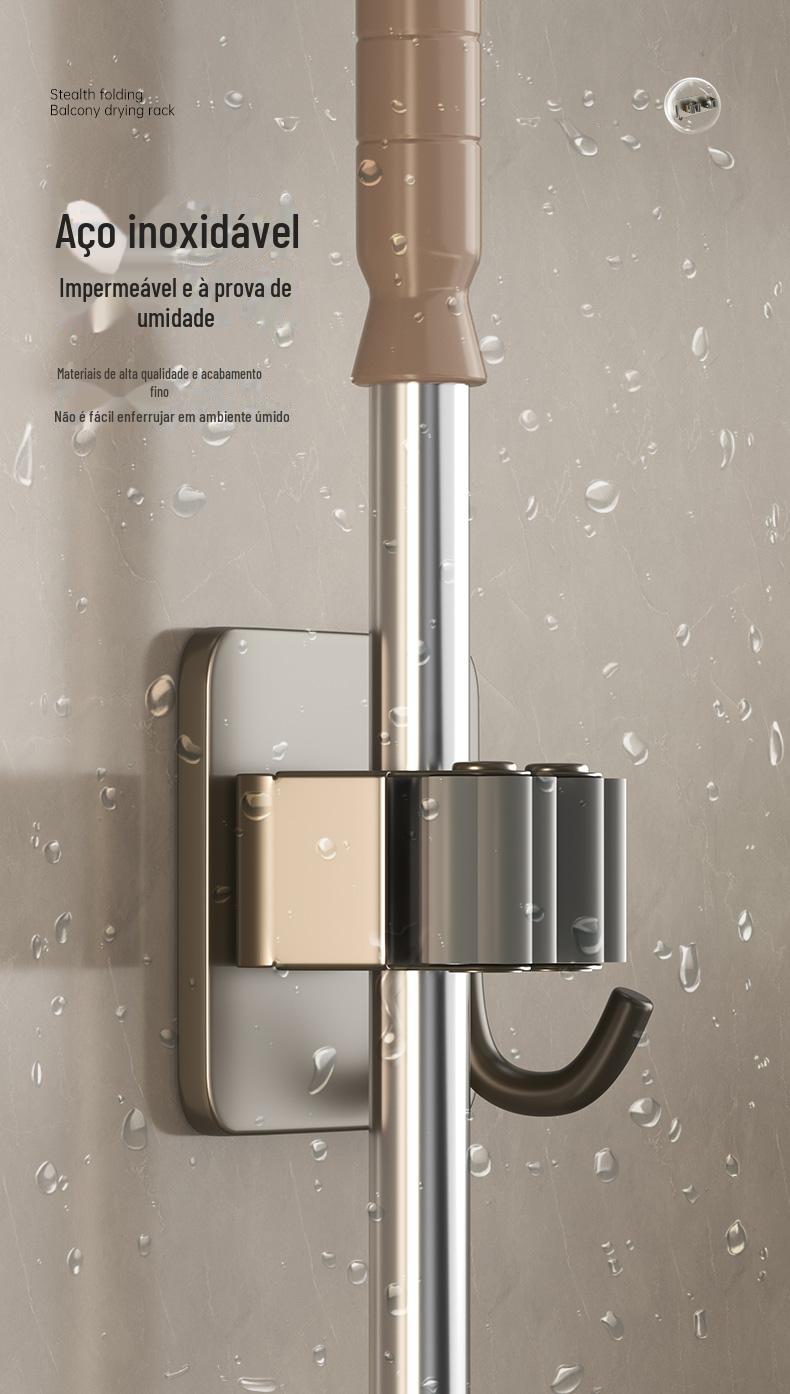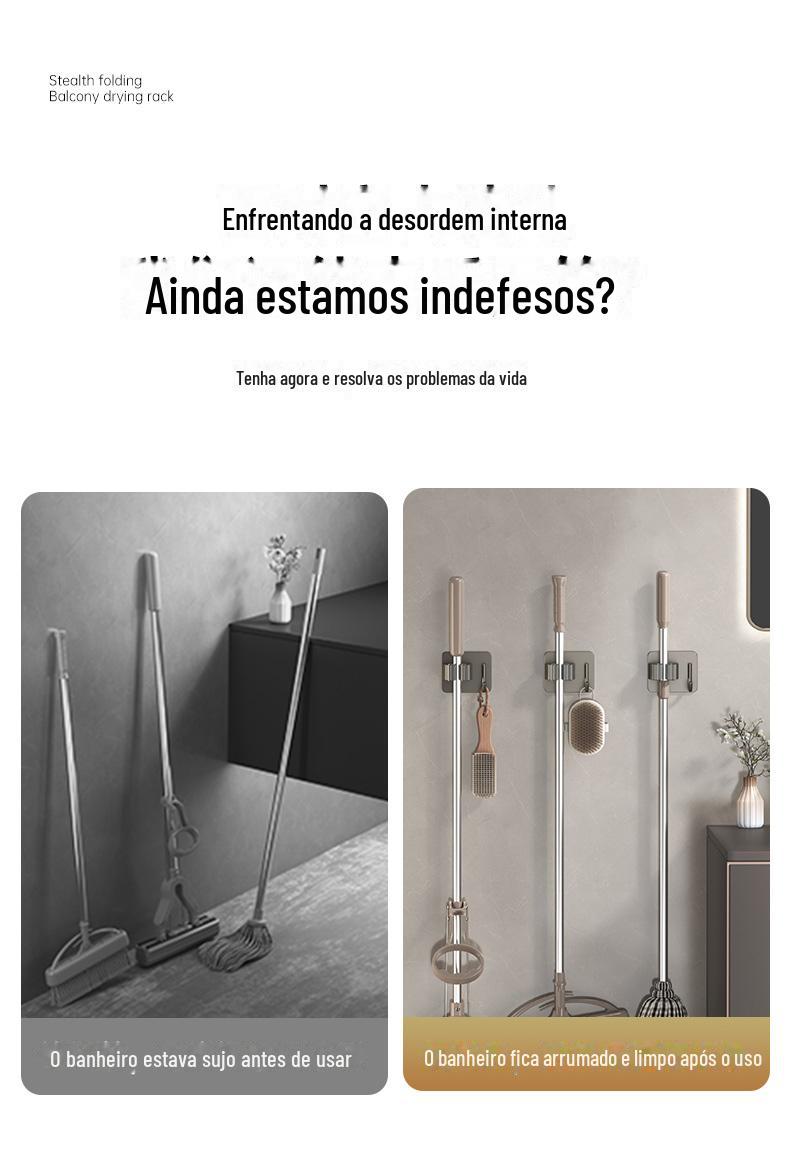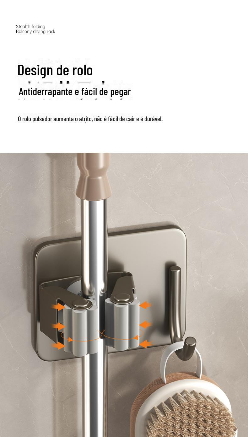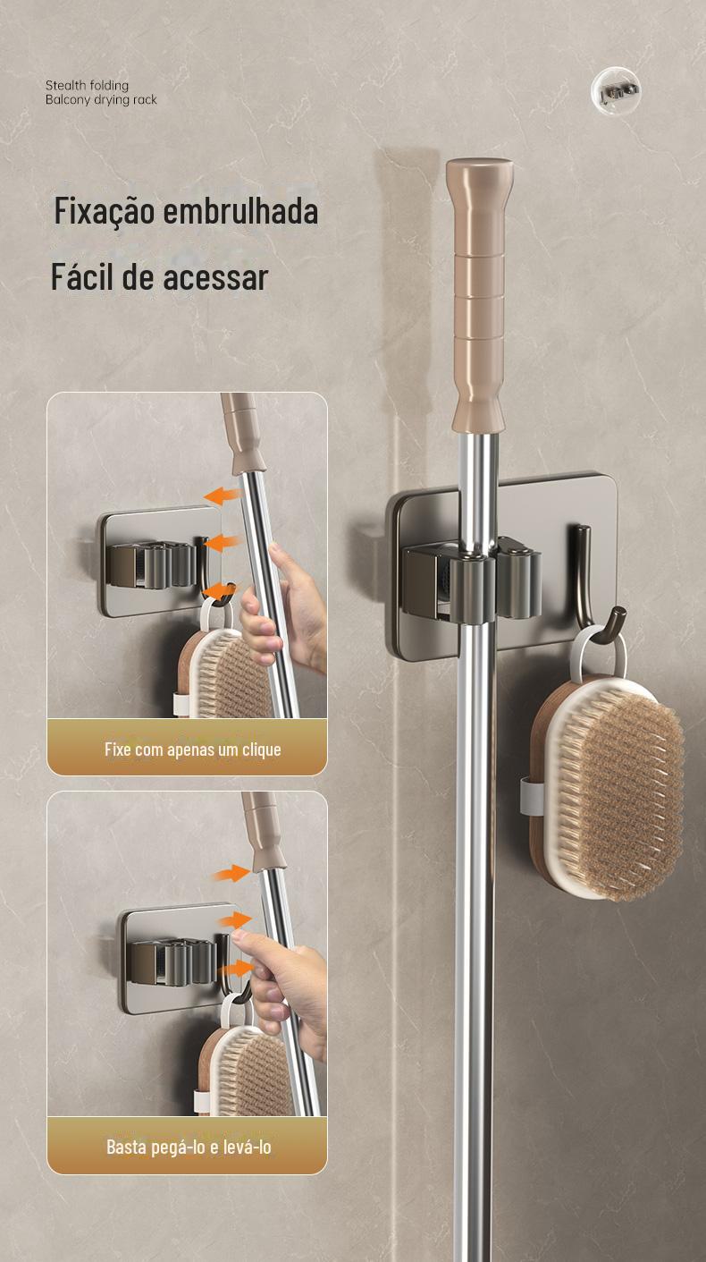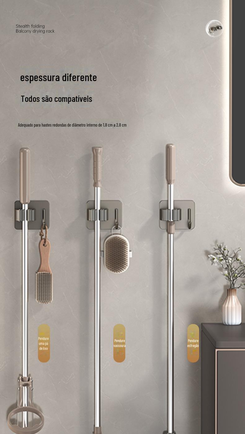 Mop Rack de aço inoxidável Mop Gancho de vaso sanitário Cabide Mop Clip Punch-free Parede montada Gun Gun Ash