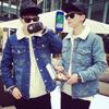 Casaco jeans forrado com lã de inverno 2023, jaqueta masculina de cashmere quente e espessa, jaqueta solta acolchoada de algodão para outono e inverno