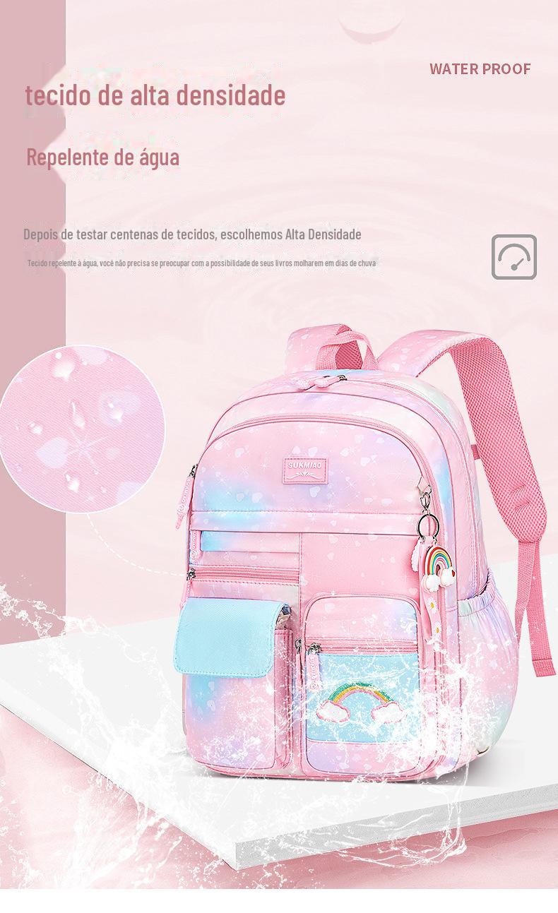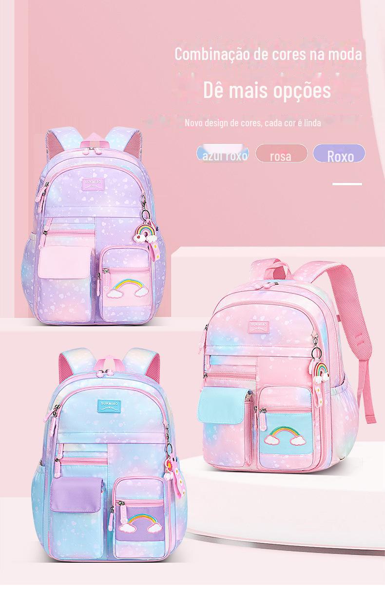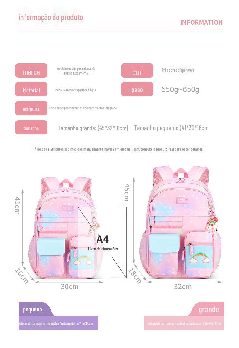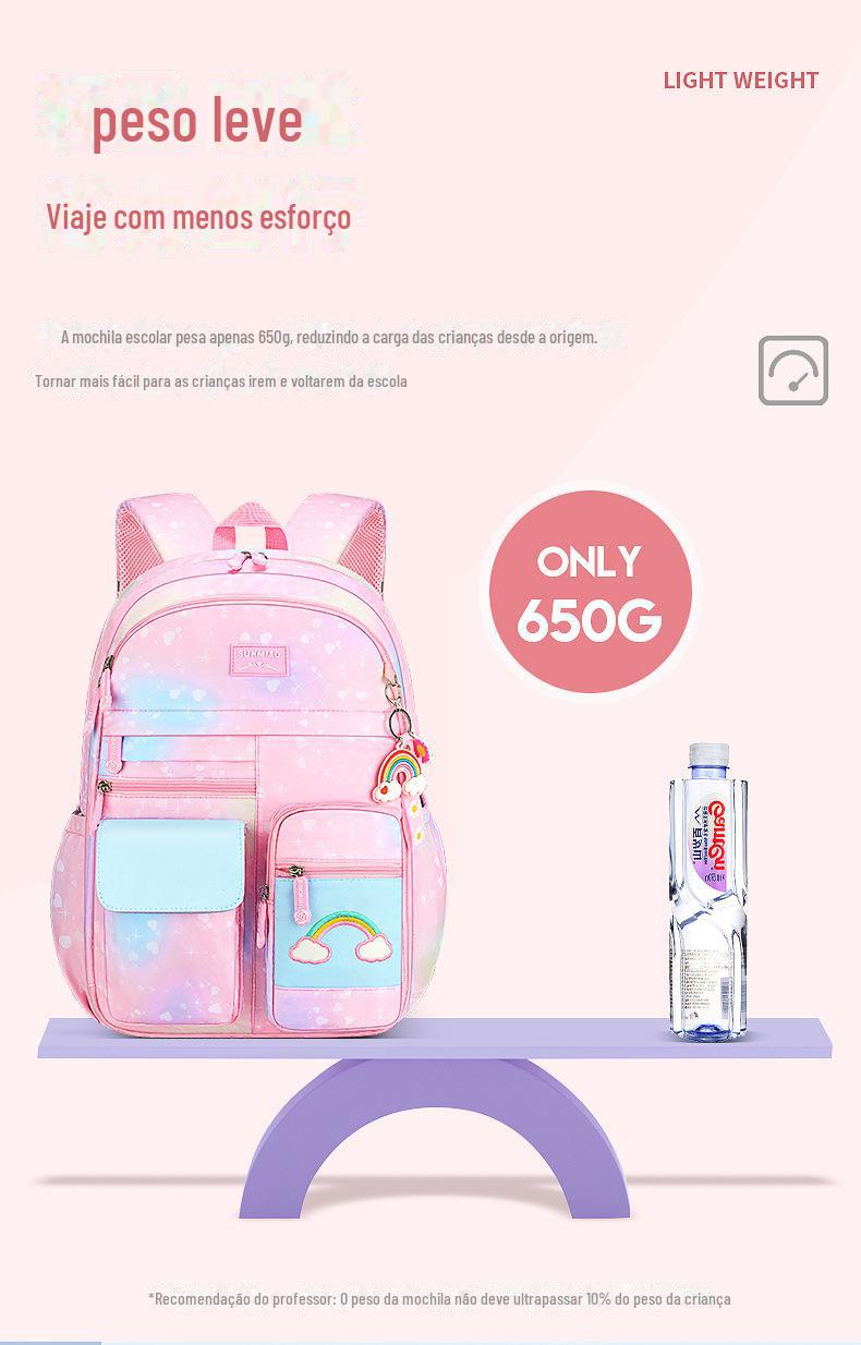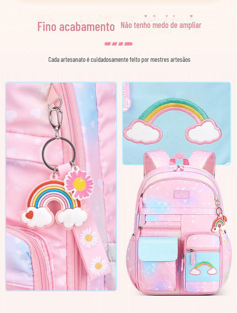 Mochila Nova para Aluno do Ensino Fundamental Feminina Arco-Íris Leve Redutora de Carga Proteção para a Coluna Grande Capacidade Mochila Infantil 1º ao 6º Ano Exportação