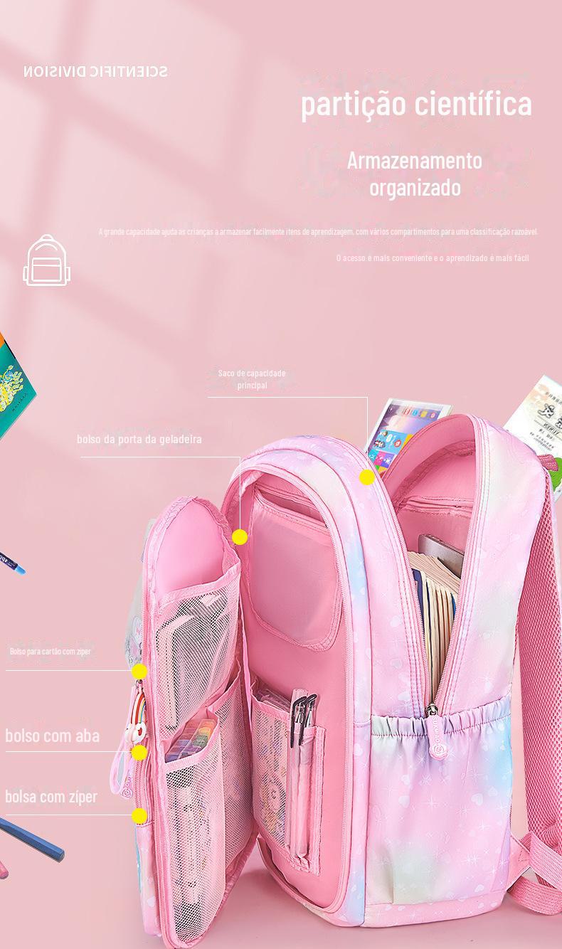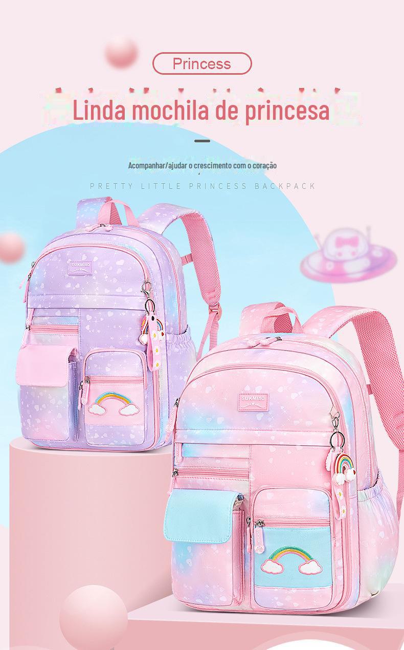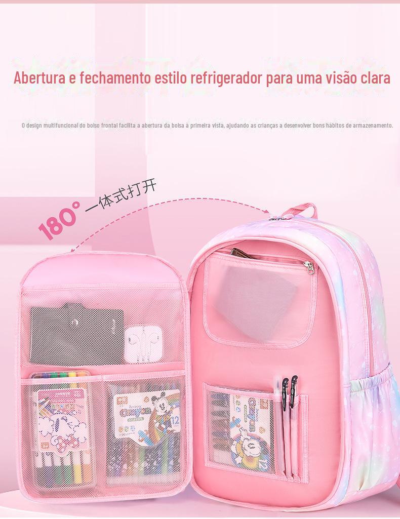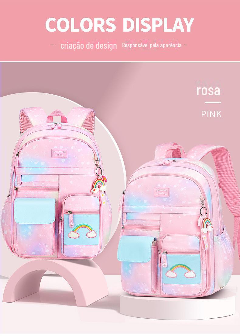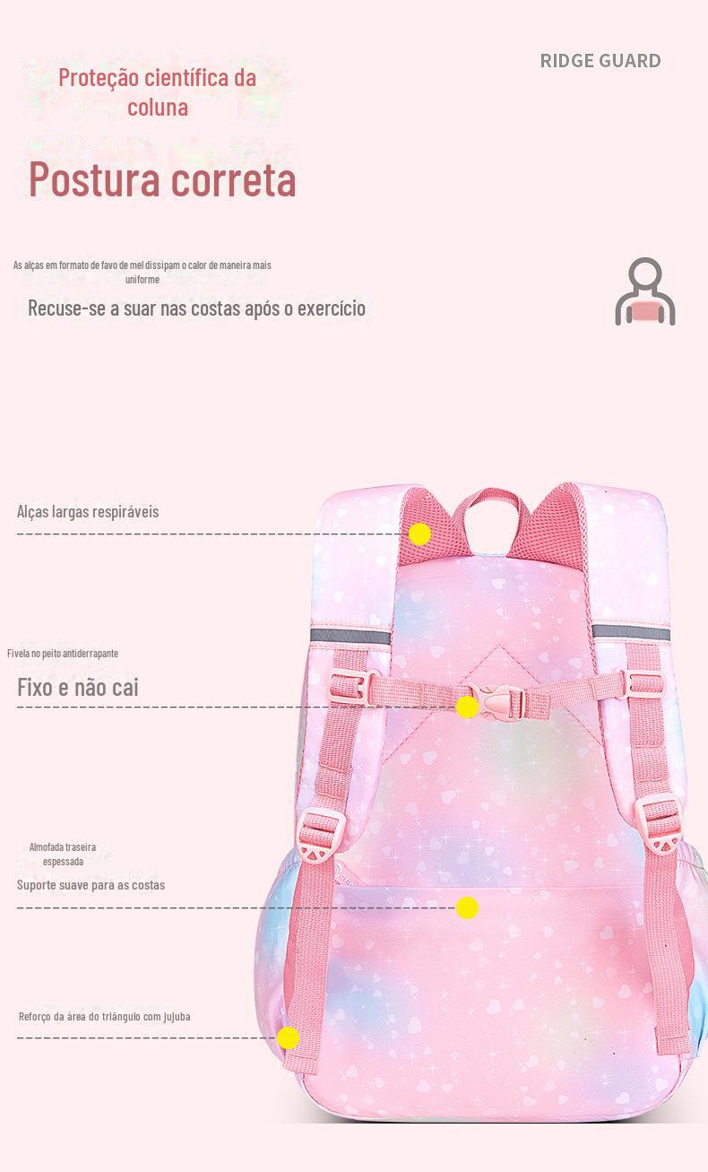Mochila Nova para Aluno do Ensino Fundamental Feminina Arco-Íris Leve Redutora de Carga Proteção para a Coluna Grande Capacidade Mochila Infantil 1º ao 6º Ano Exportação