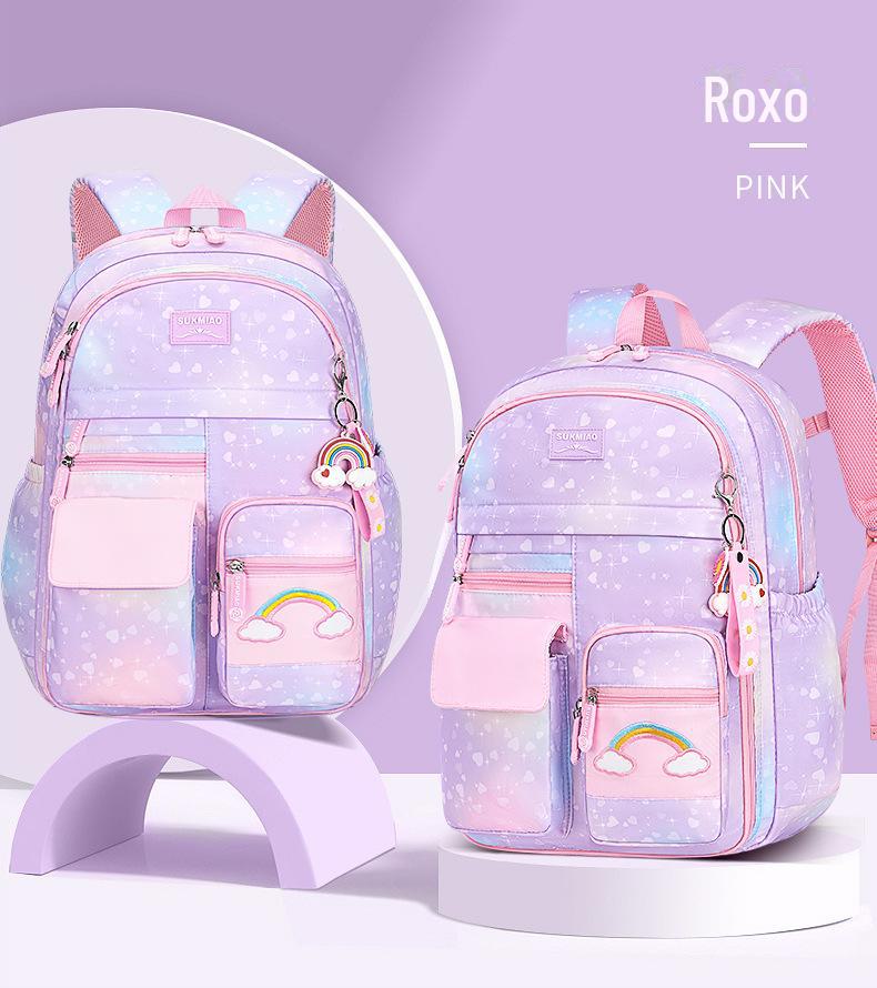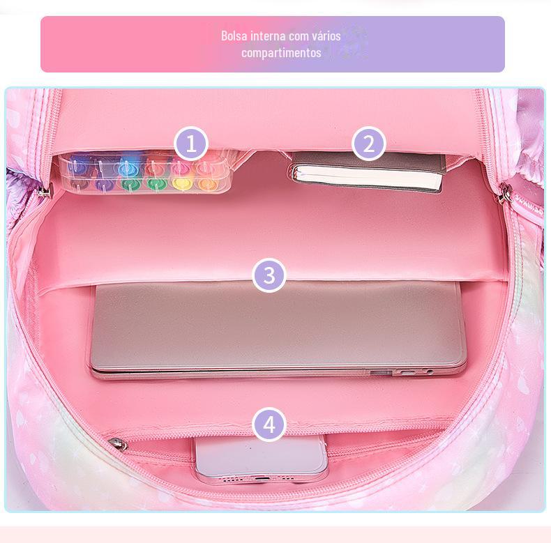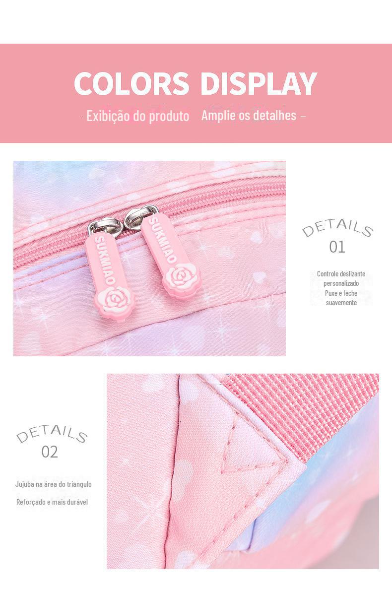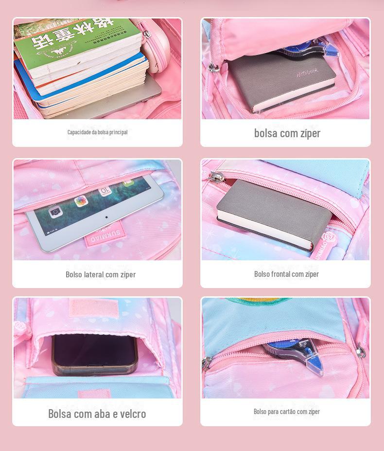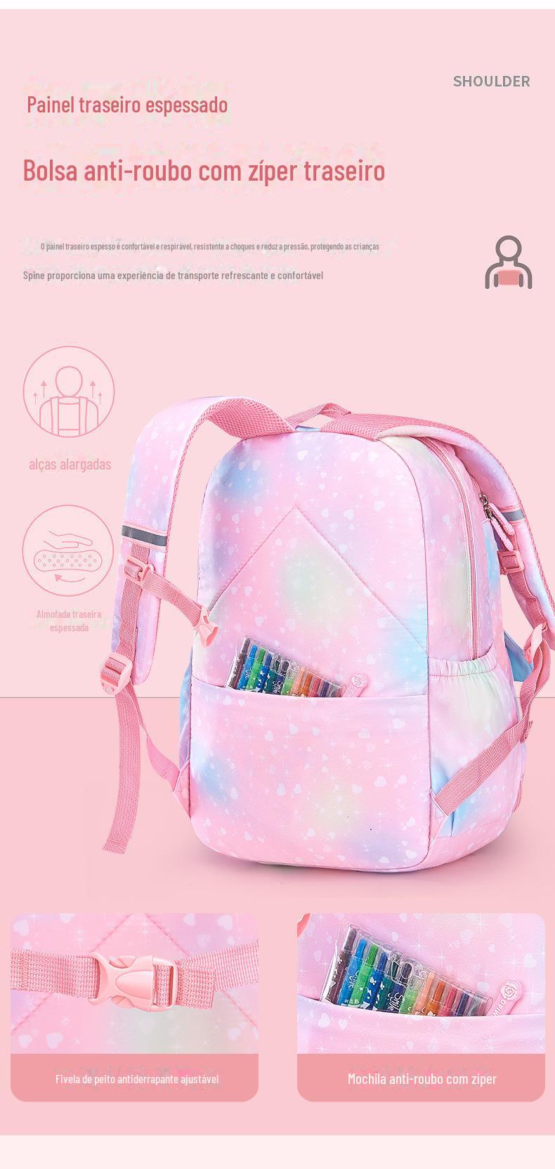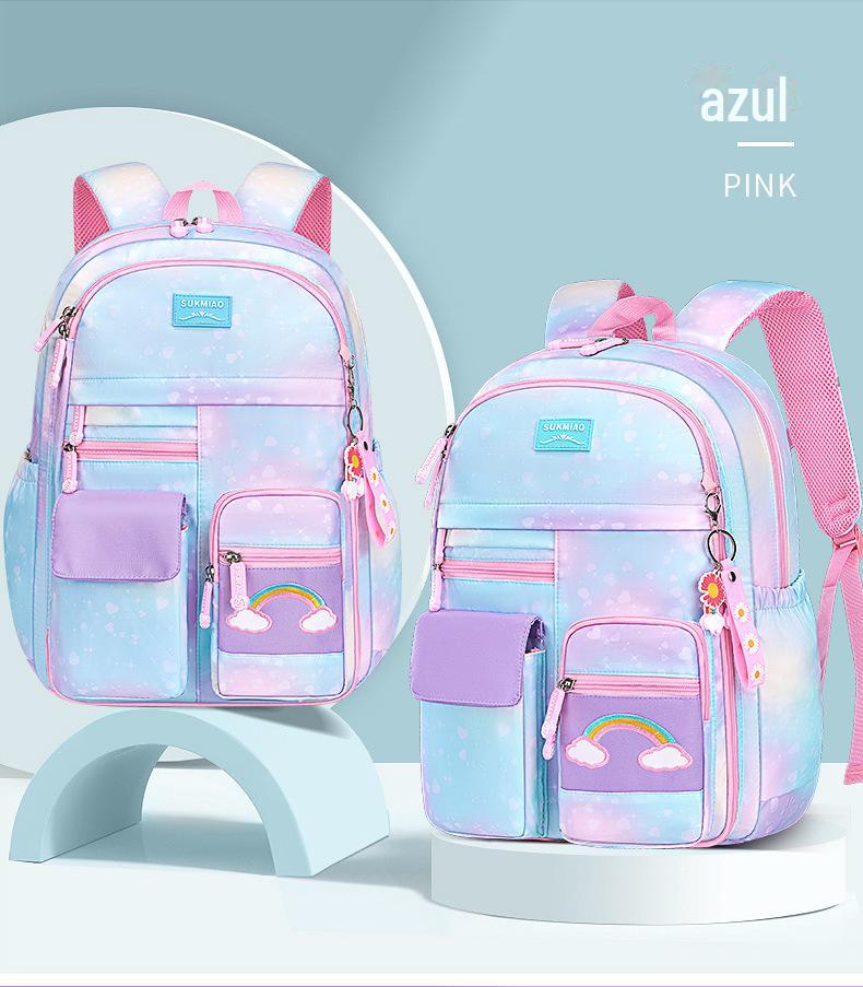 Mochila Nova para Aluno do Ensino Fundamental Feminina Arco-Íris Leve Redutora de Carga Proteção para a Coluna Grande Capacidade Mochila Infantil 1º ao 6º Ano Exportação