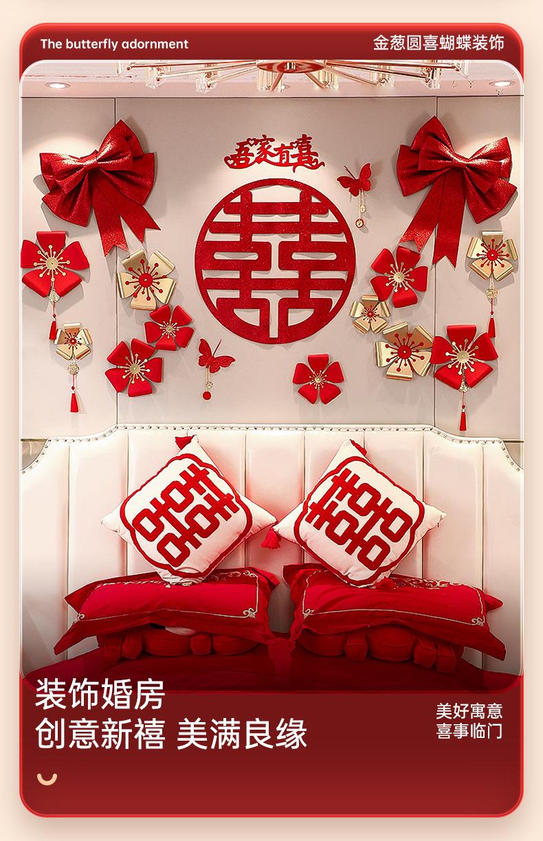 Compre Internet Celebridade Casamento Quarto Layout Bow Decoração Masculino e Feminino Praça Sala de Estar Quarto Cortina Gravata Decoração Casamento Feliz Personagem Flower Set no atacado no Joom.pro