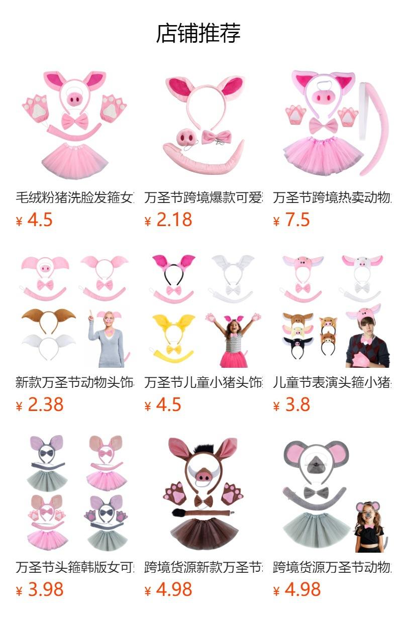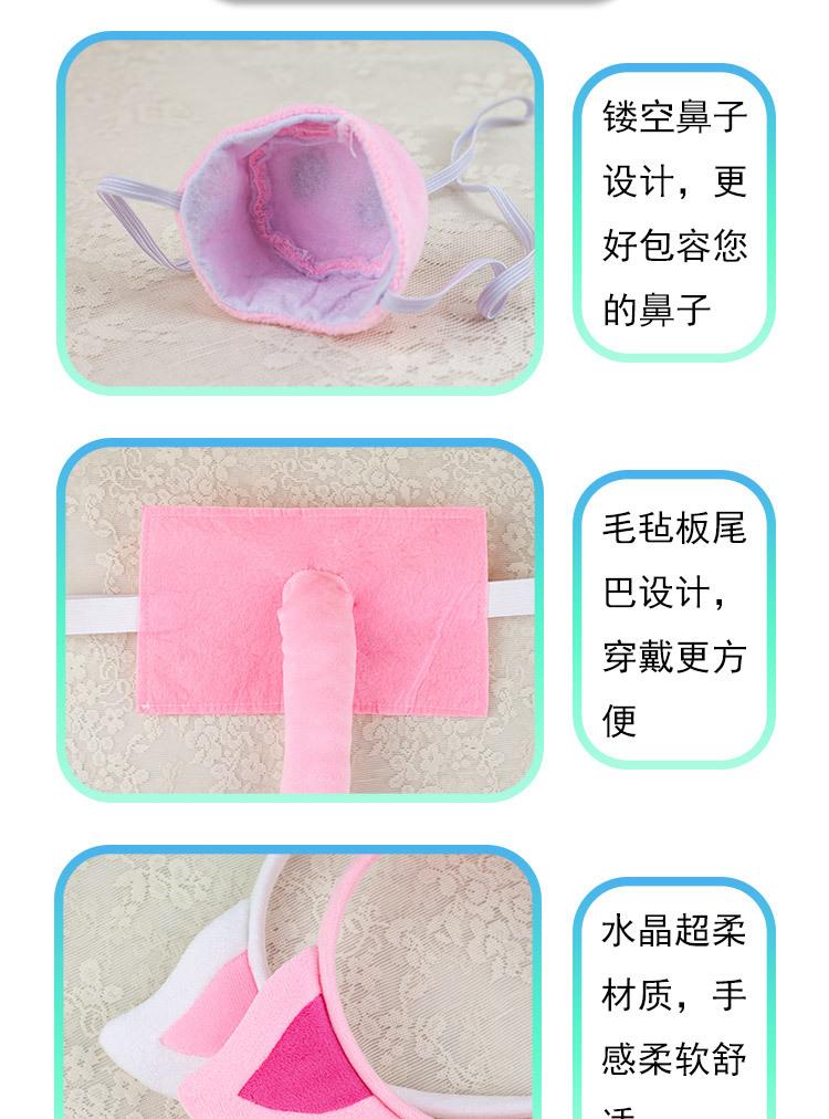 Super soft pink sunny pig ears four-piece set [55CM powder felt tail]], Super soft pink sunny pig four-piece s...