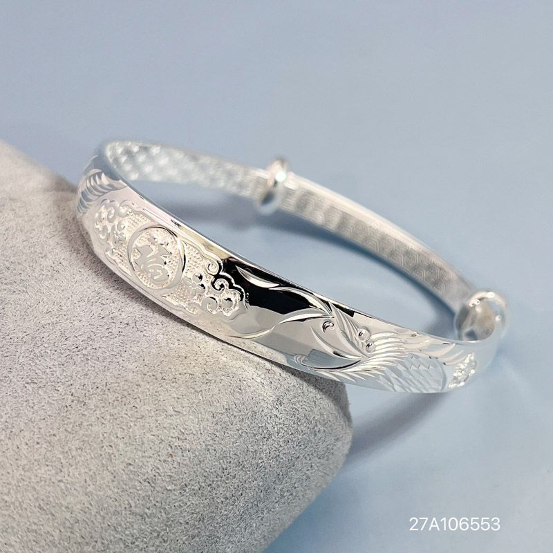 Compre 9999 pulseira de prata esterlina feminina fu personagem Dragon e Phoenix pulseira auspiciosa estilo étnico sólido push-pull bracelet presente para a mãe no atacado no Joom.pro