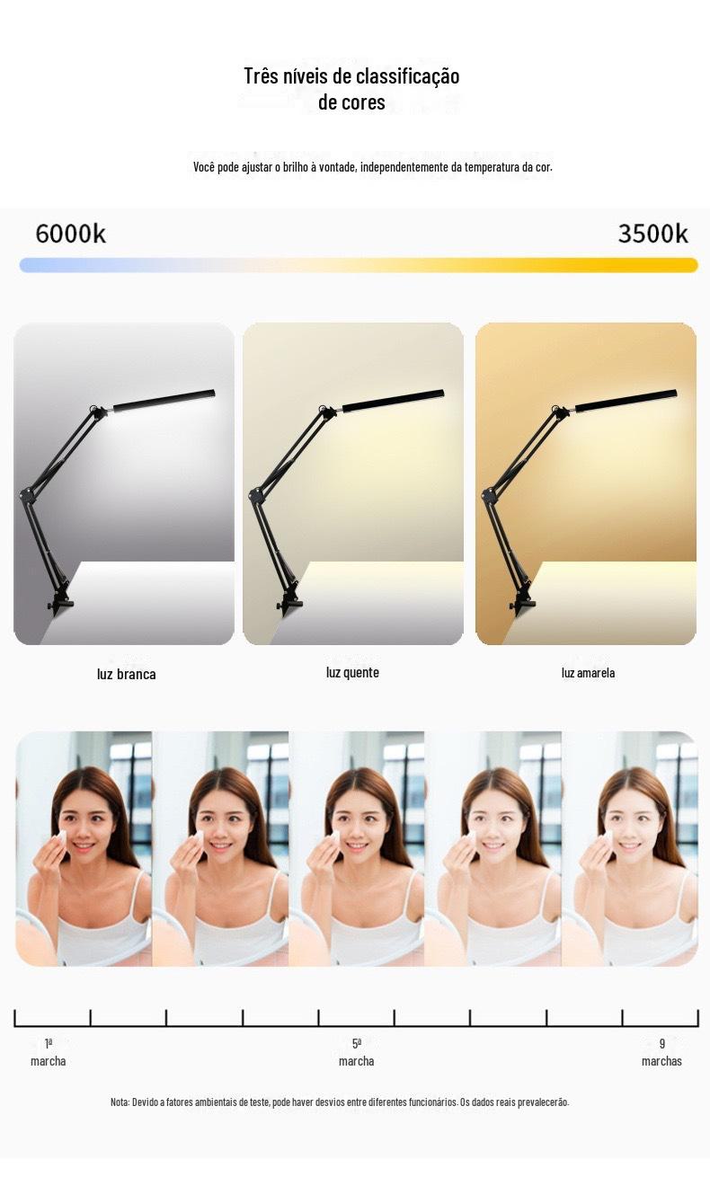 3. A temperatura de cor da luz LED pode ser ajustada em 3 níveis, e o brilho pode ser ajustado em 10 níveis, o que pode atender às necessidades de vários ambientes de trabalho.