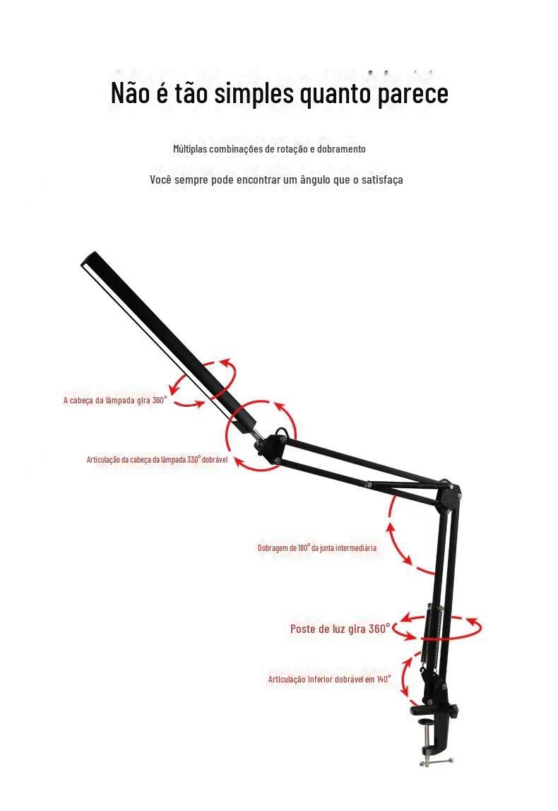 2. A cabeça da lâmpada pode ser ajustada para cima e para baixo 220 graus e girada 360 graus, e o braço telescópico longo de 22 cm + 22 cm pode ser ajustado 180 graus e 135 graus.
