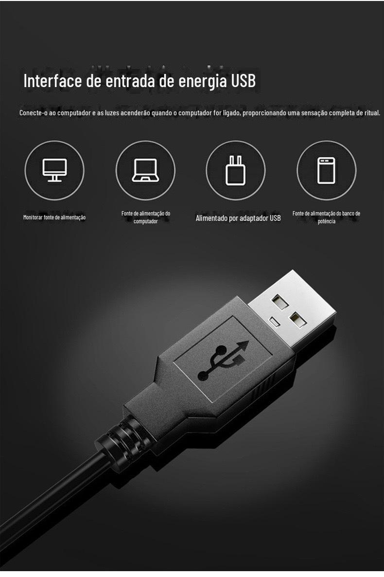 Tensão: DC5V1A/2A (pode ser alimentado por carregadores de celular 5v1A e 2A, use adaptador 5v2A para alimentação, que tem maior potência e brilho, recomendado)