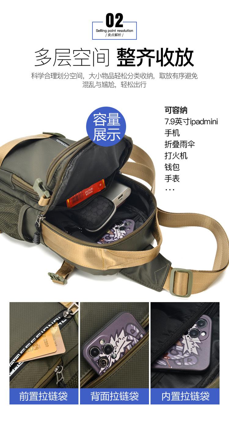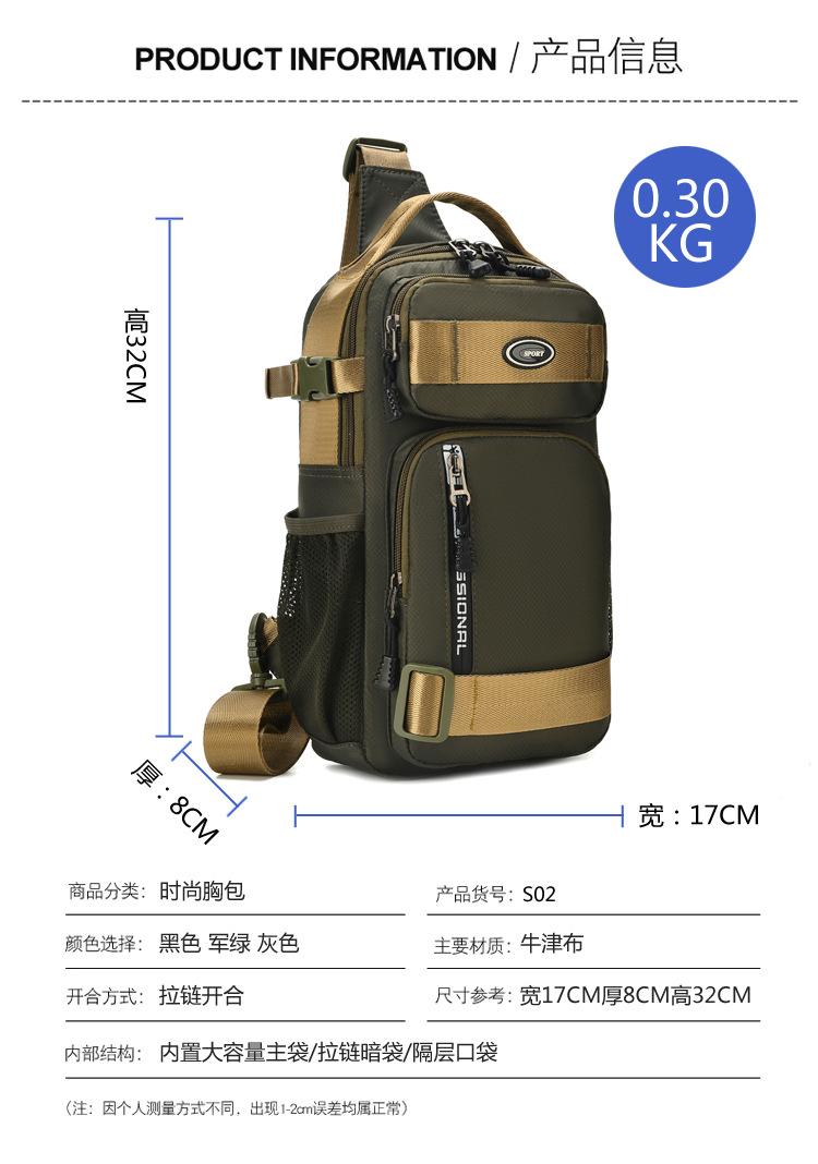 Bolsa de Peito Grande para Exterior Nova Bolsa de Ombro Casual Masculina Tecido Oxford Bolsa Transversal Mochila Multifuncional Impermeável