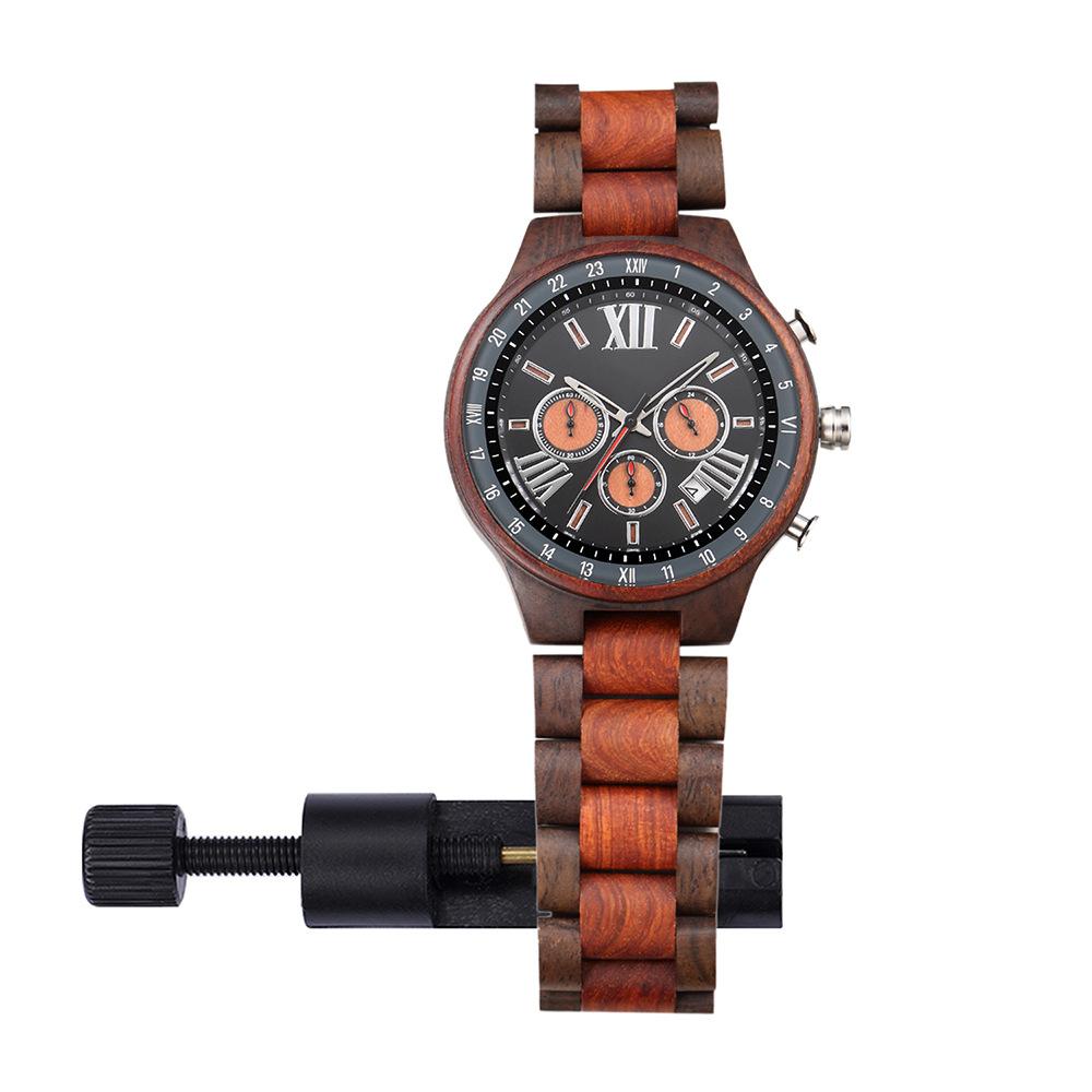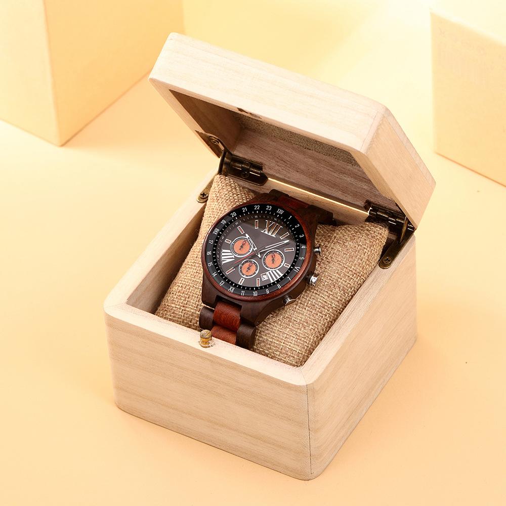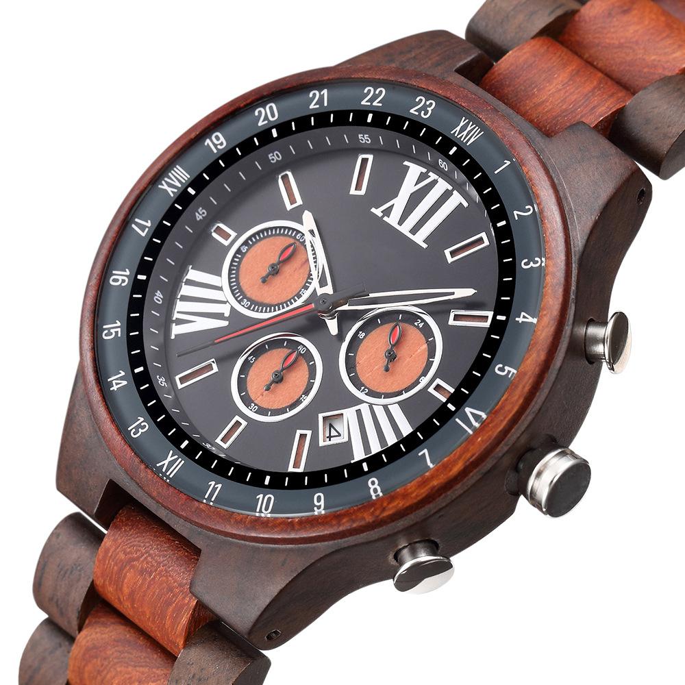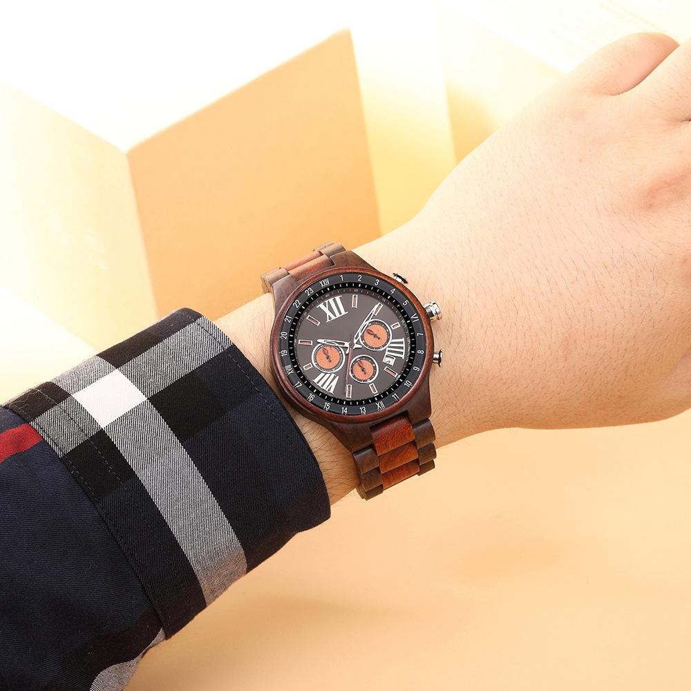 Comércio Exterior Relógio de Quartzo de Madeira Masculino Amazon, Relógio de Sândalo Multifuncional Retrô da Moda com Mostrador Grande