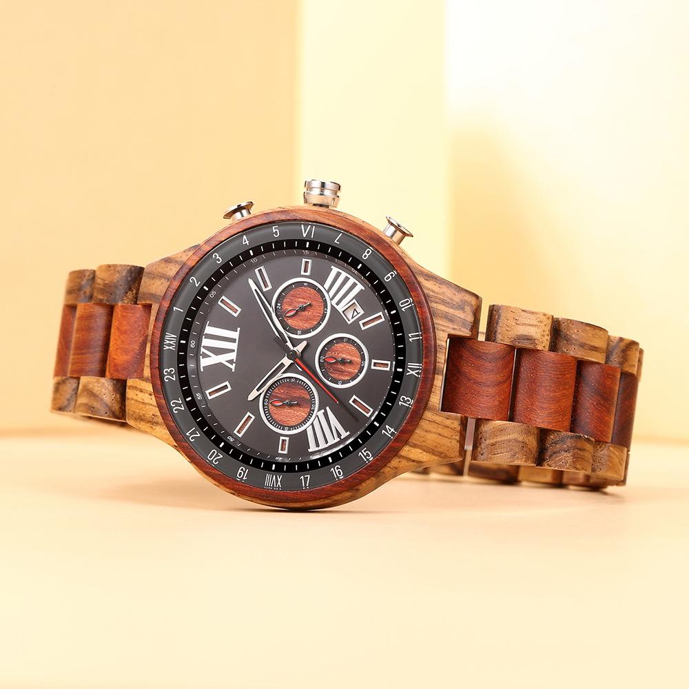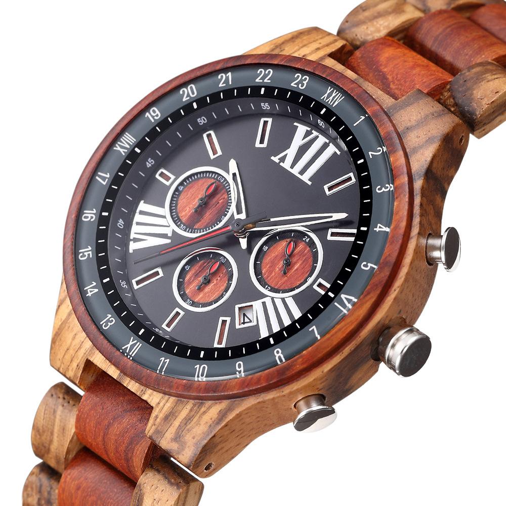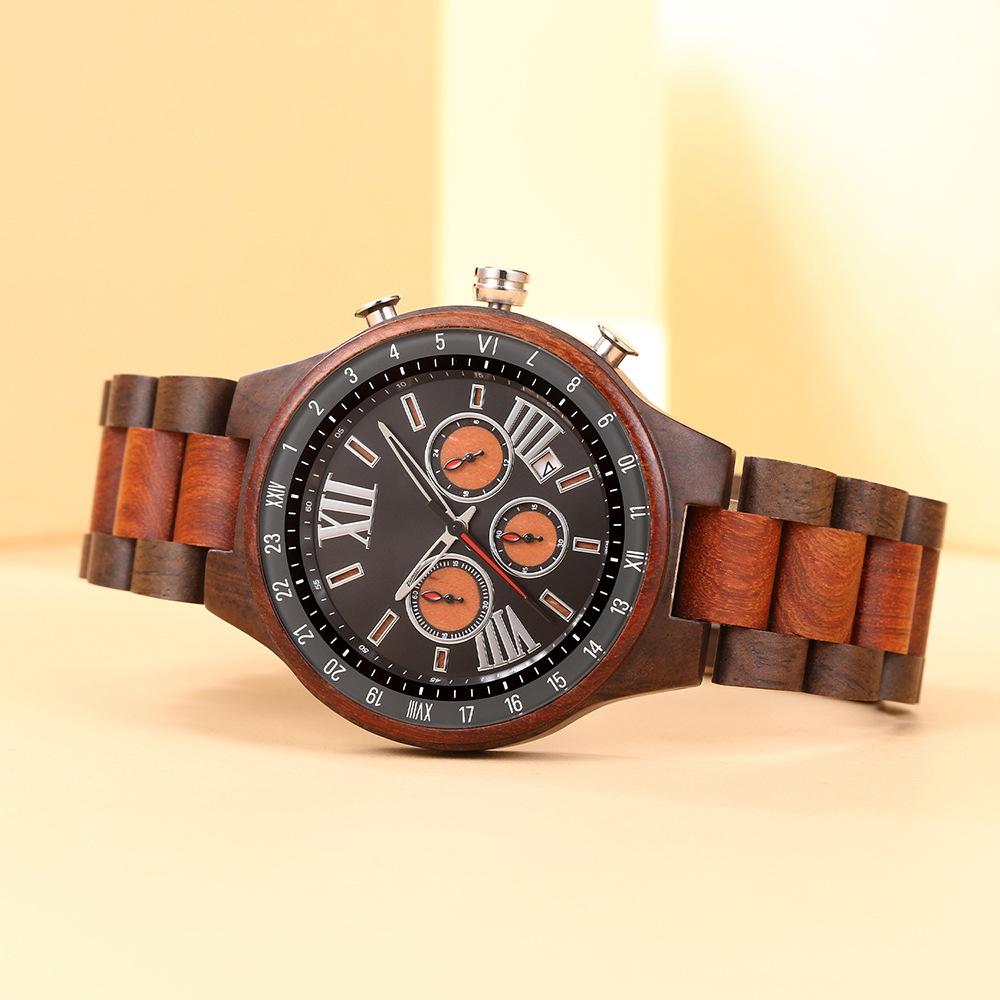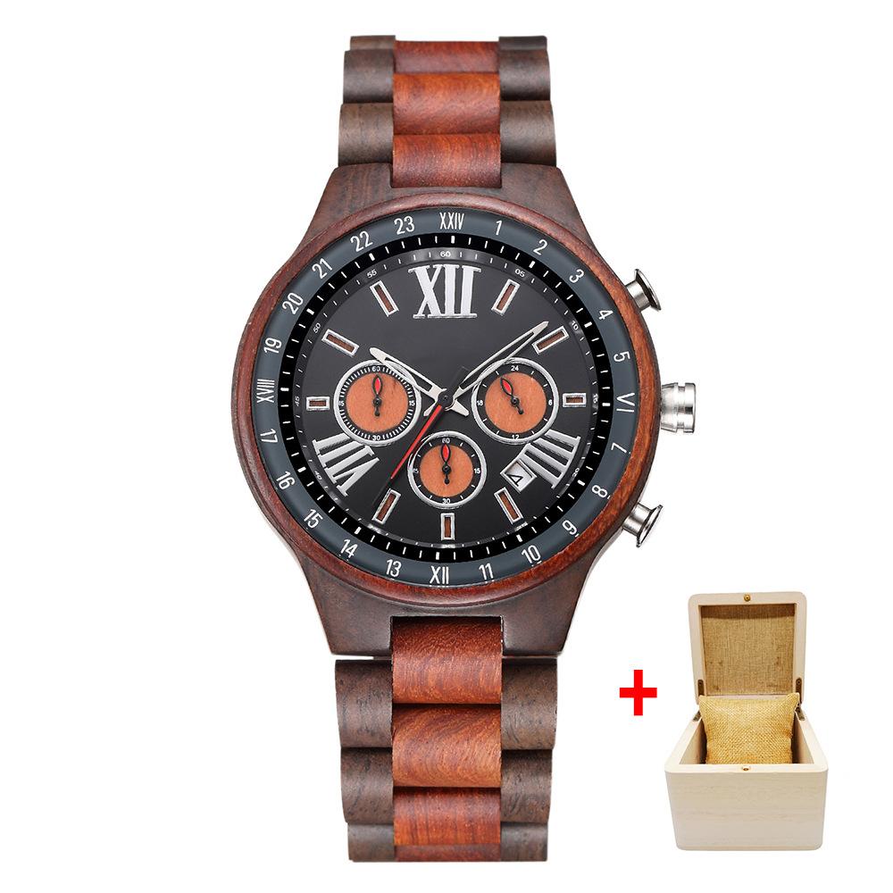 Comércio Exterior Relógio de Quartzo de Madeira Masculino Amazon, Relógio de Sândalo Multifuncional Retrô da Moda com Mostrador Grande