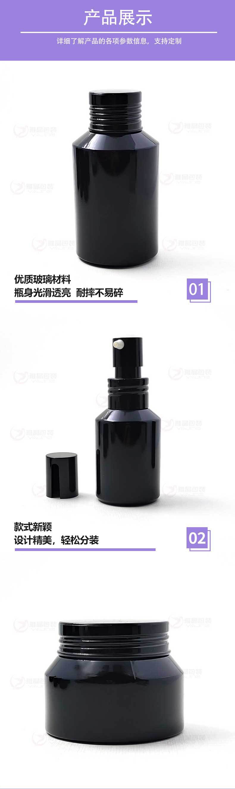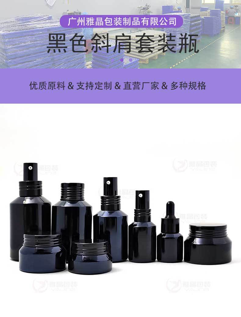 Em estoque 15-120ml ombro oblíquo vidro transparente preto frasco de emulsão terno para envase de creme cosmético 15-50G