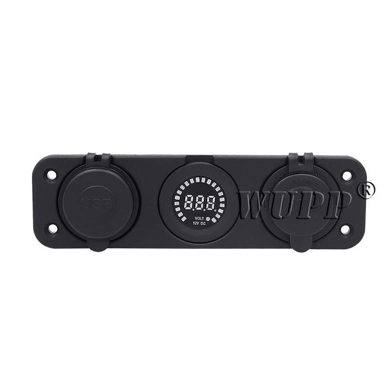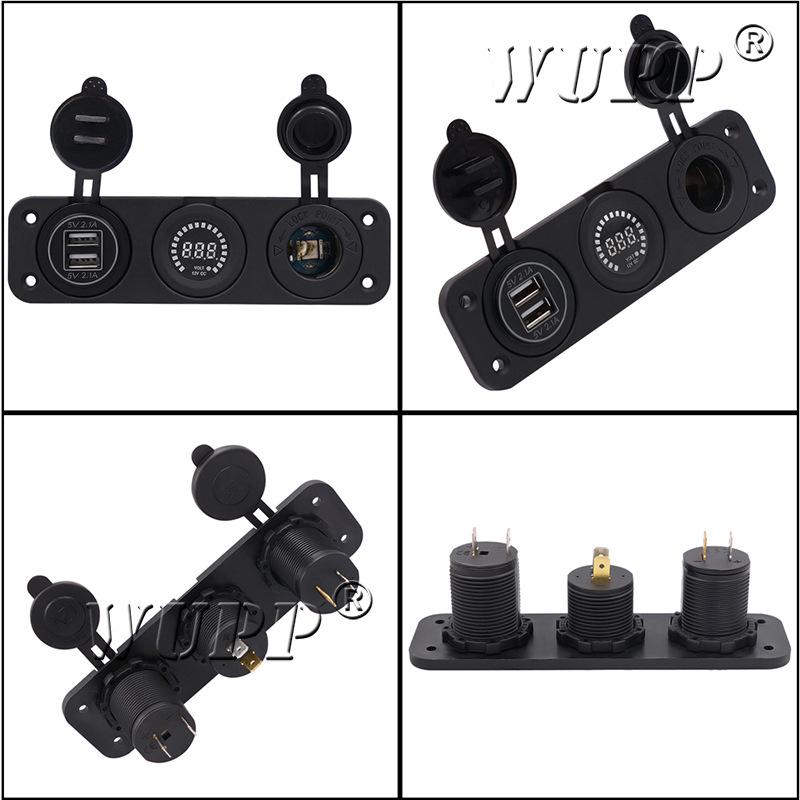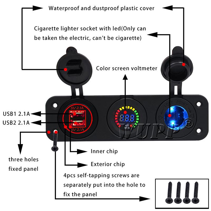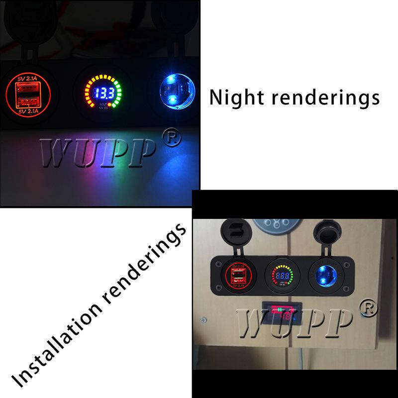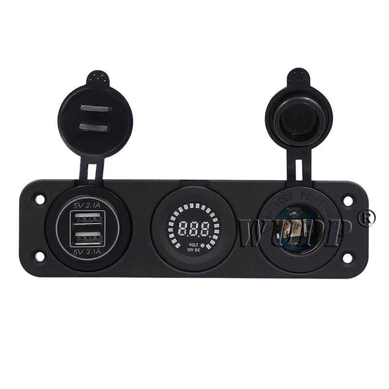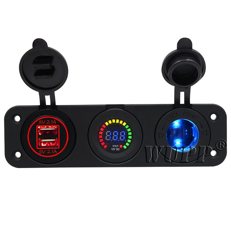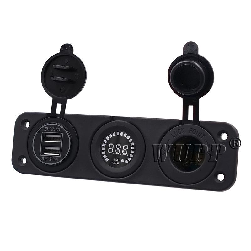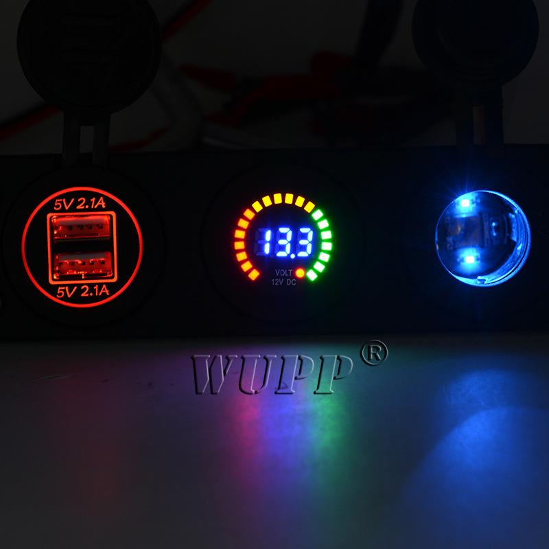 [Nome do produto]: Console central com abertura 4.2A dual USB + voltímetro de tela colorida 12V + base 12V com luz