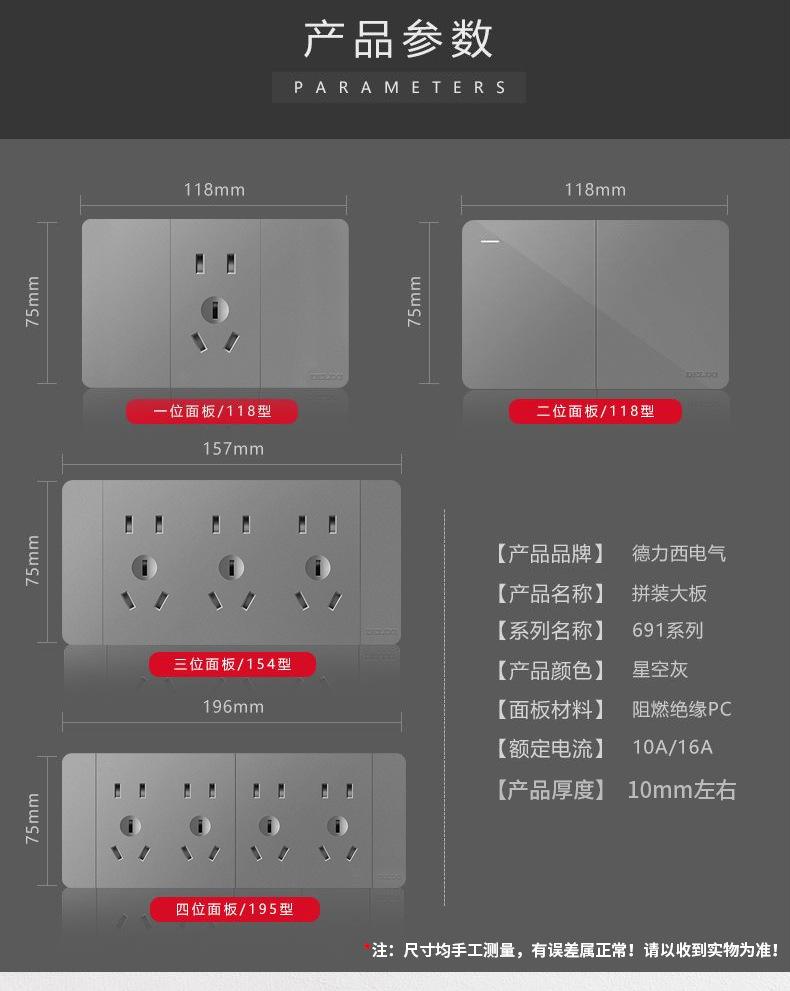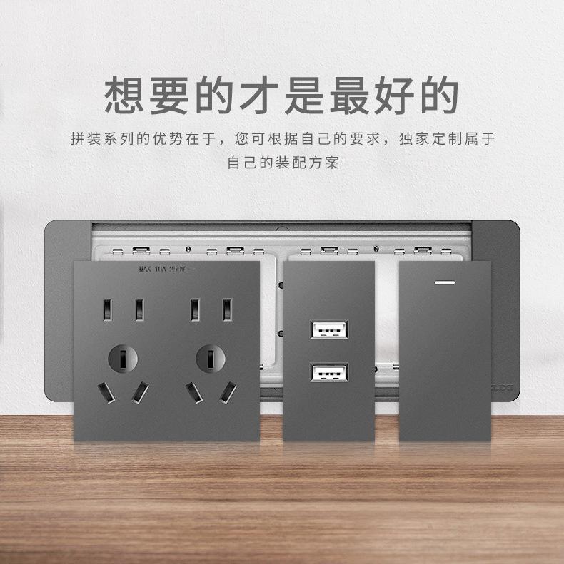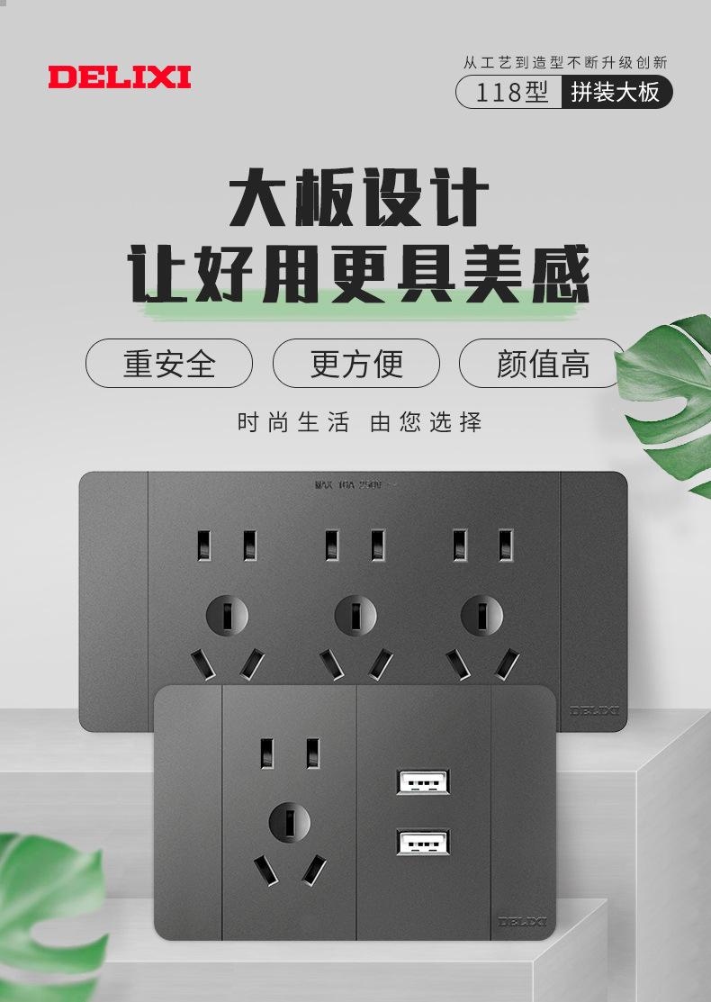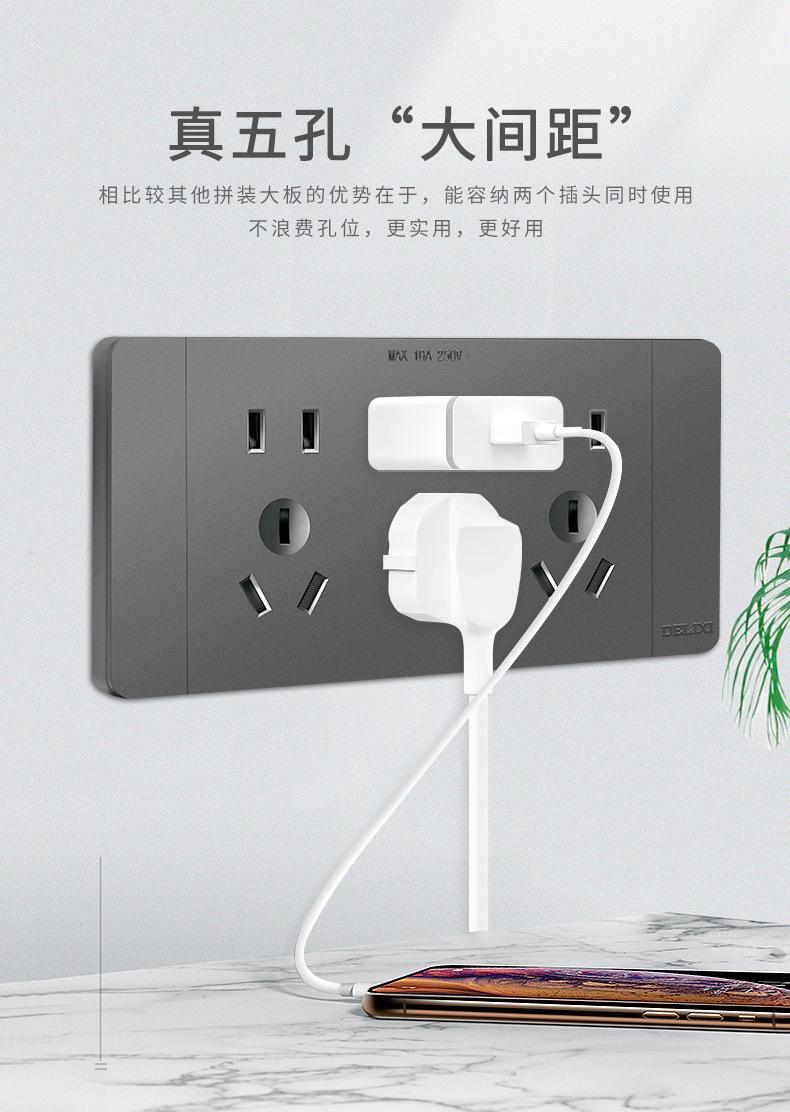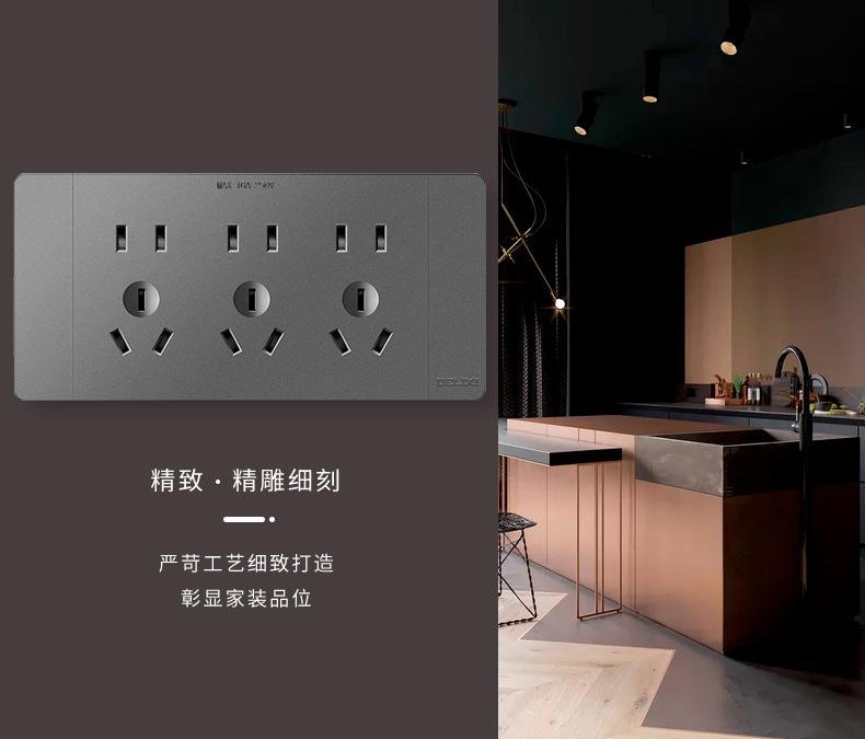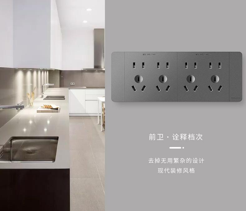 Tomada Interruptor Tipo 118 Delixi Doméstica Painel Grande 20 Furos Cozinha Porosa Quatro Posições Tomada Retangular 691 Cinza