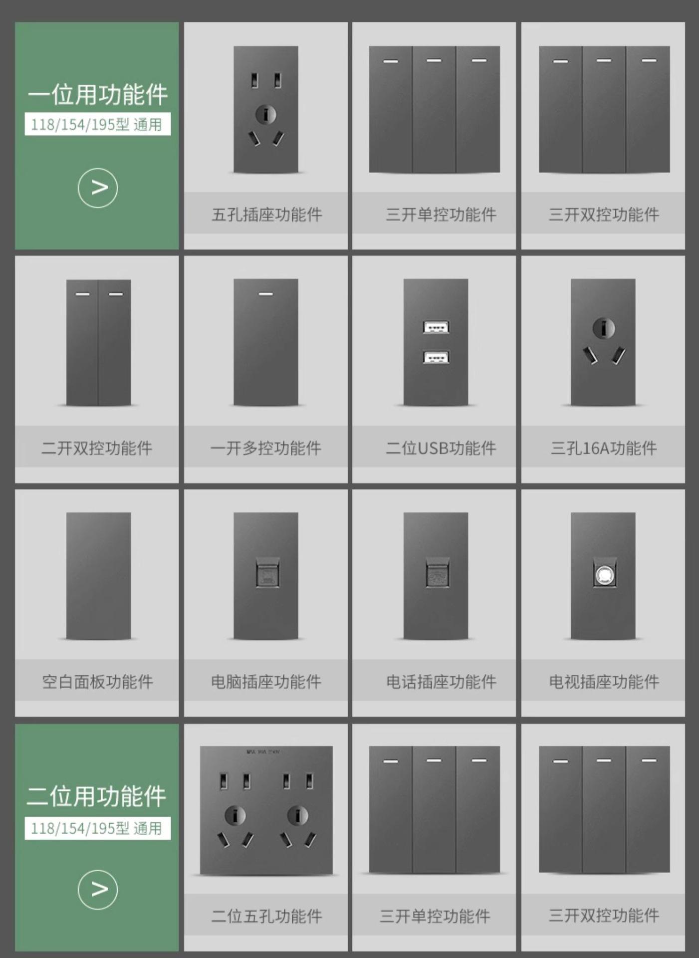 Five-hole socket [118 small box], Ten-hole socket [118 small box], Fifteen-hole socket [type 154 medium box], ...