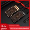 Dandali crocodilo padrão couro automático cinto fivela homens all-match duas camadas cowhide casual cinto calças de negócios cinto