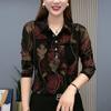 Camisa modal de manga comprida e renda graciosa com decote em V