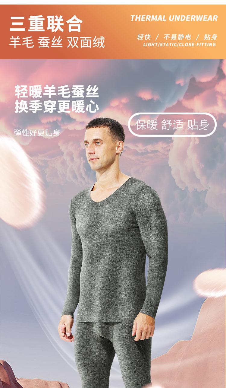 Compre Roupa íntima térmica sem rastros, masculina, decote em V, forrada com lã grossa, inverno, à prova de frio, base de lã justa, roupas e calças de outono no atacado no Joom.pro